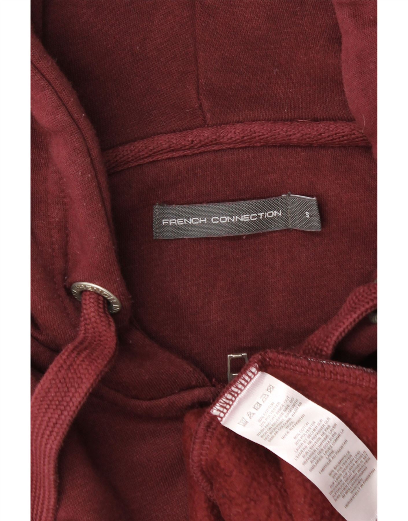 FRENCH CONNECTION Mens Zip Hoodie Sweater Small Burgundy Cotton