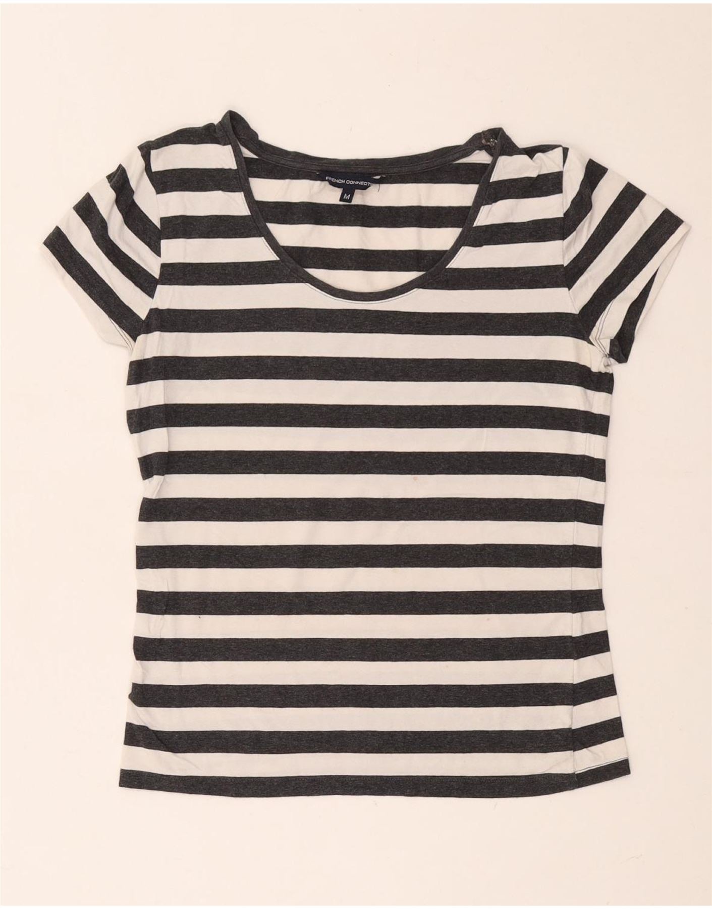 Home > Women's > Depop Clothing > FRENCH CONNECTION Womens T-Shirt Top UK 12 Medium Grey Striped Cotton