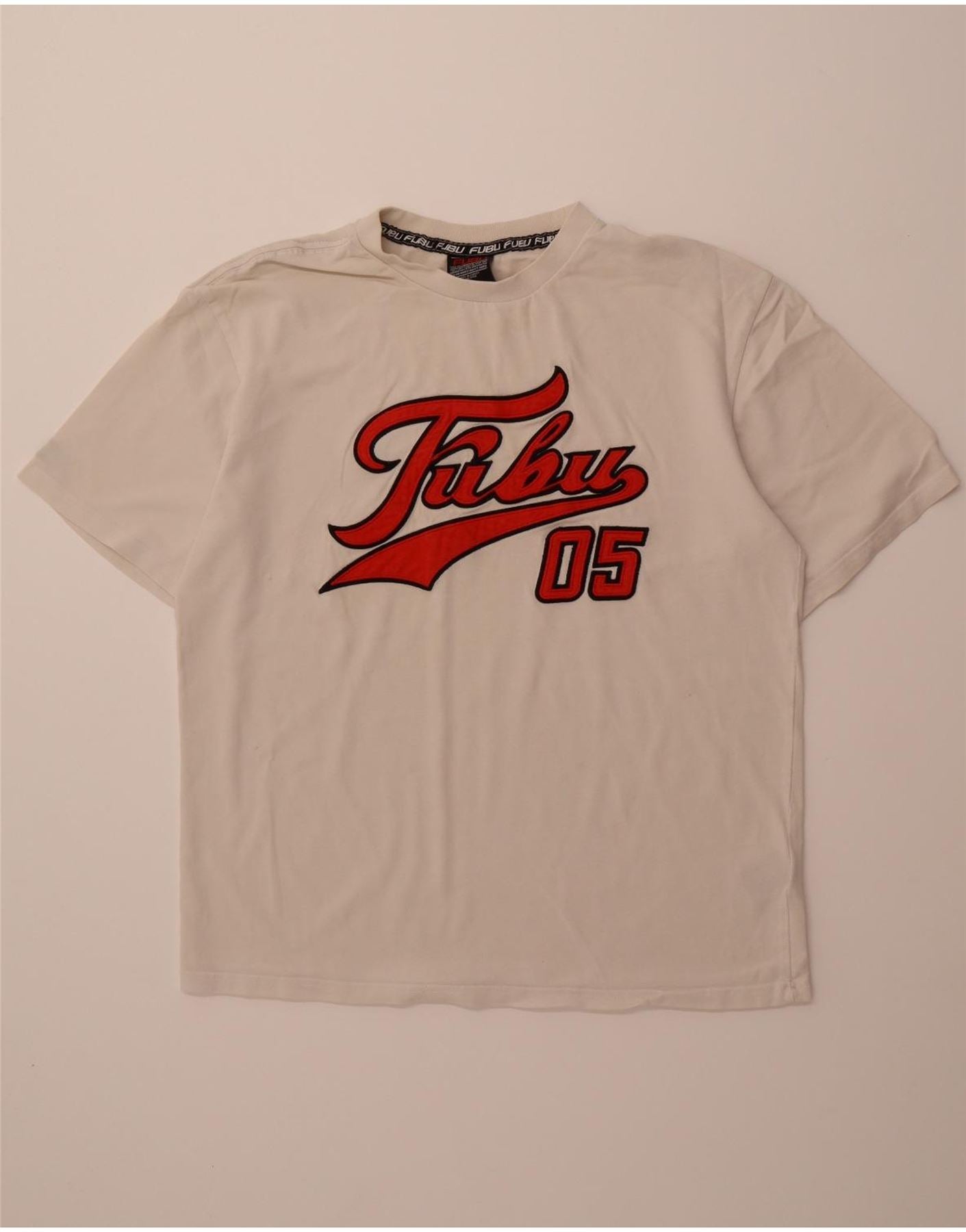 FUBU Mens Graphic T-Shirt Top Small Off White Cotton