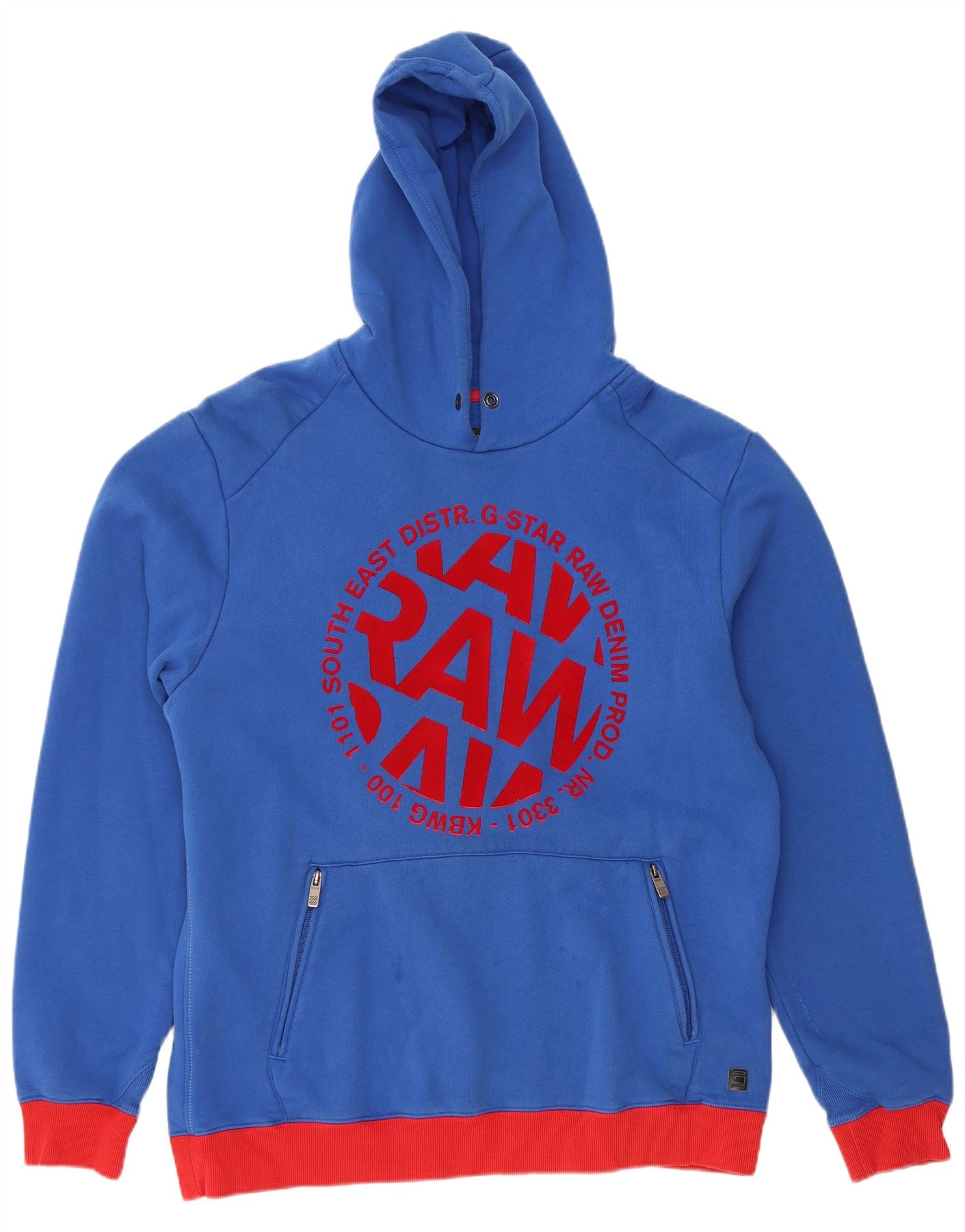 G-STAR Mens Graphic Hoodie Jumper 2XL Blue Colourblock Cotton
