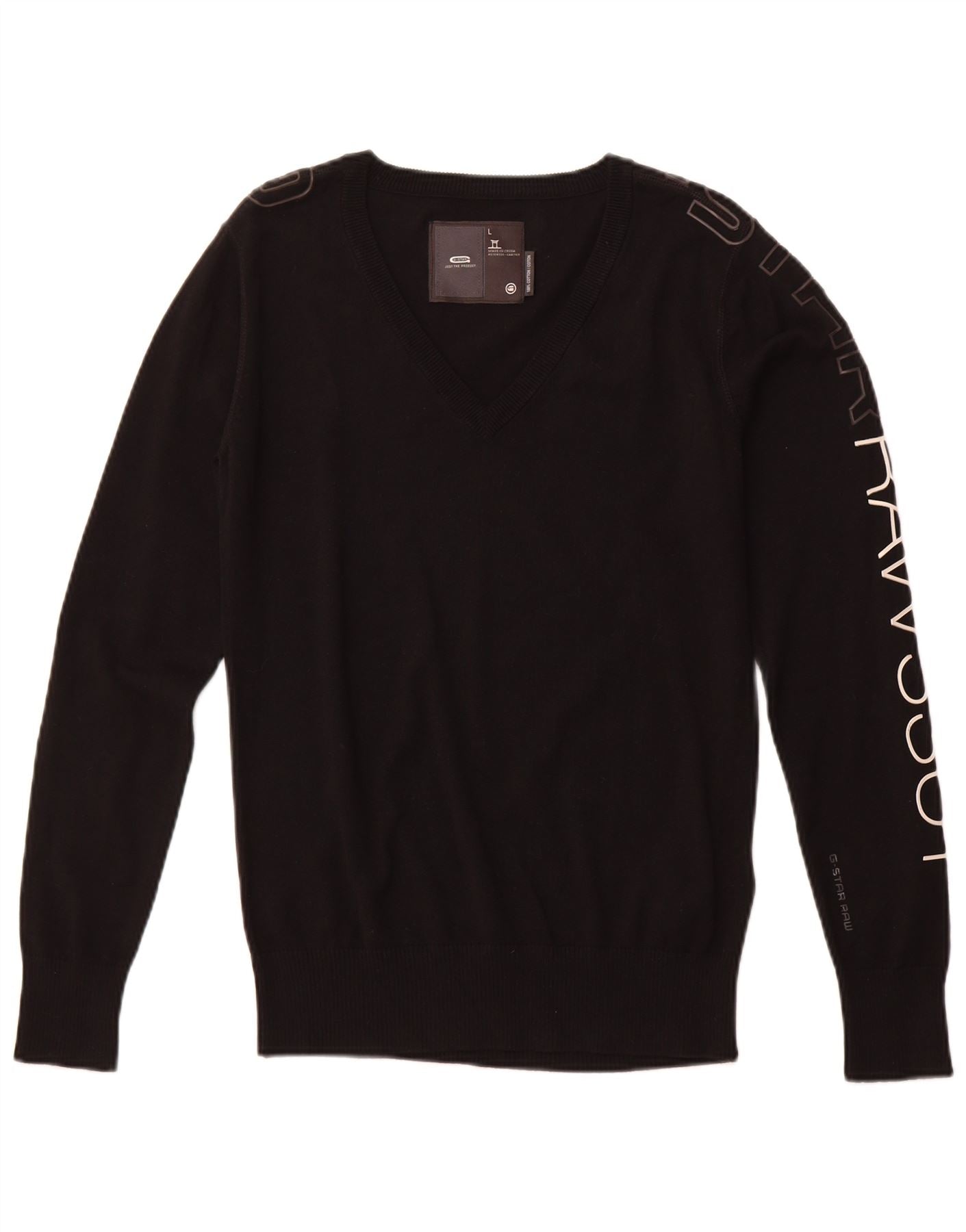 G-STAR Mens Graphic V-Neck Jumper Sweater Large Black Cotton