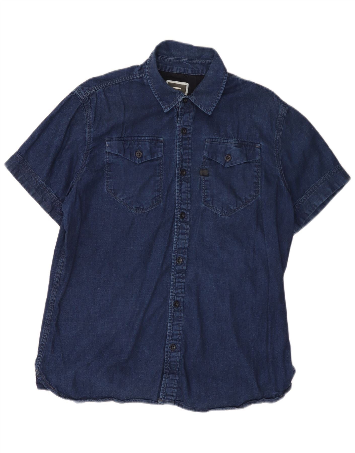 G-STAR Mens Short Sleeve Denim Shirt XL Navy Blue Cotton