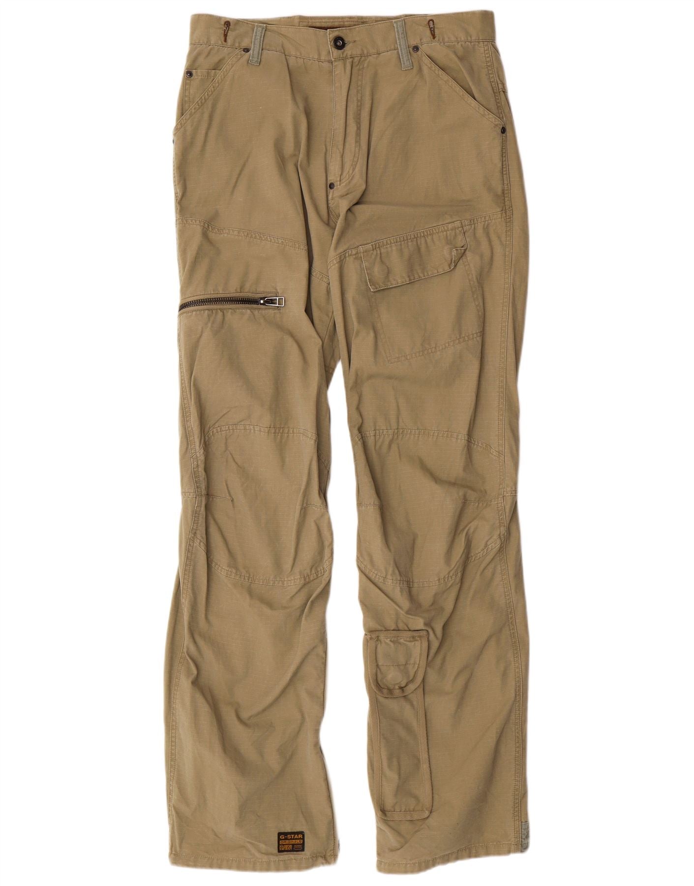 G-STAR Mens Straight Cargo Trousers W31 L34 Khaki Cotton