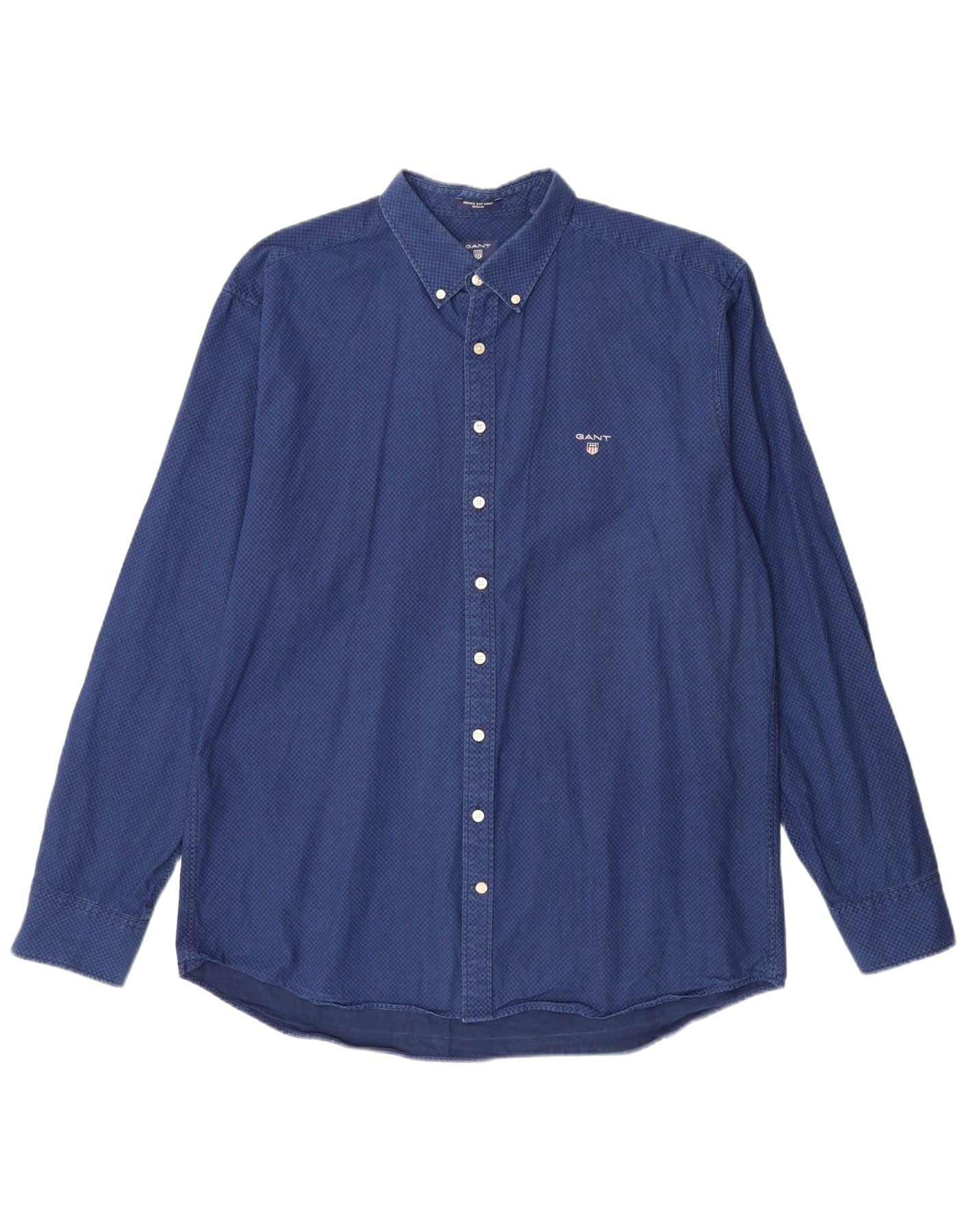 GANT Mens Regular Fit Shirt Size 45/46 18 2XL Blue Geometric Cotton