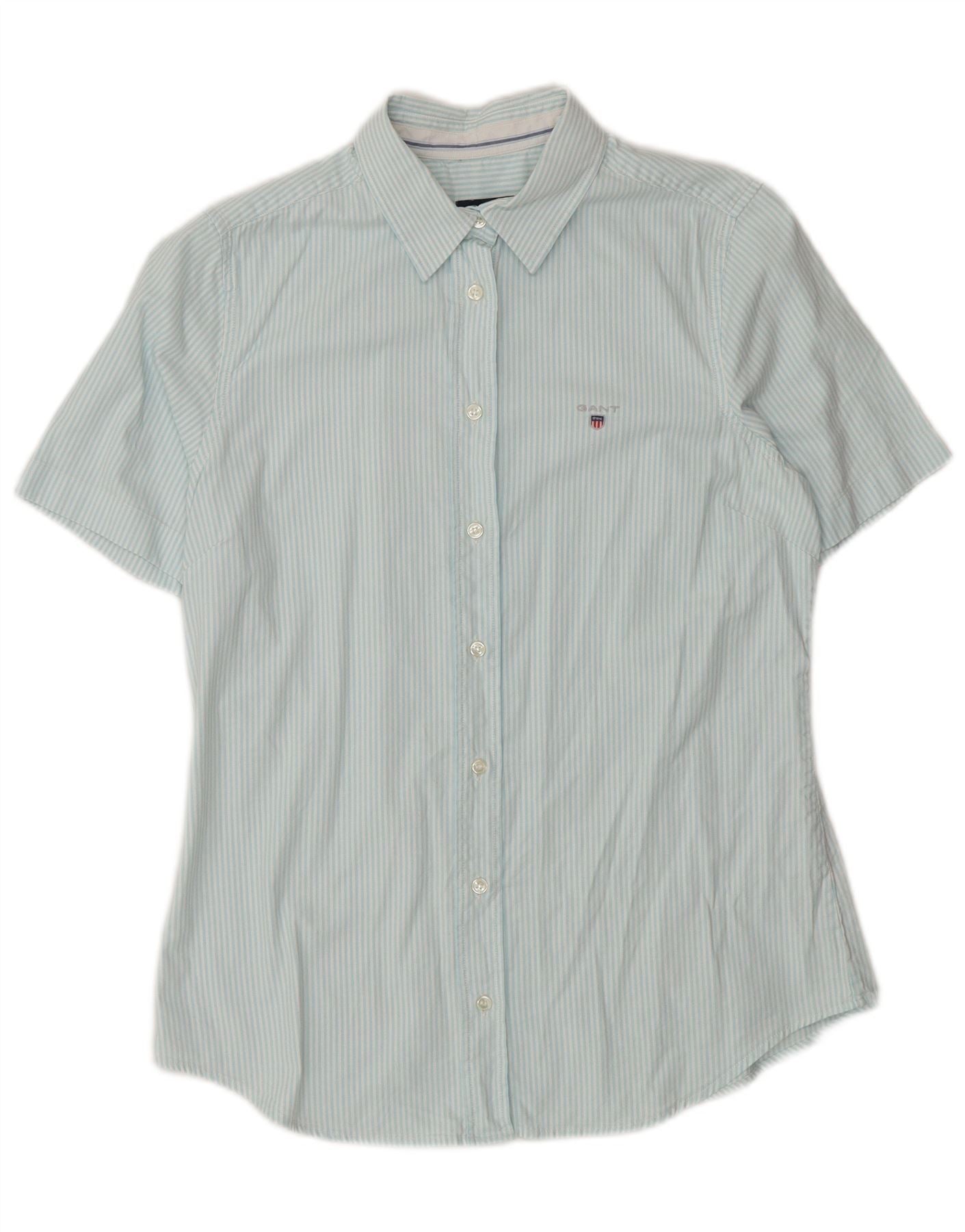 GANT Womens Short Sleeve Shirt UK 12 Medium Blue Pinstripe Cotton
