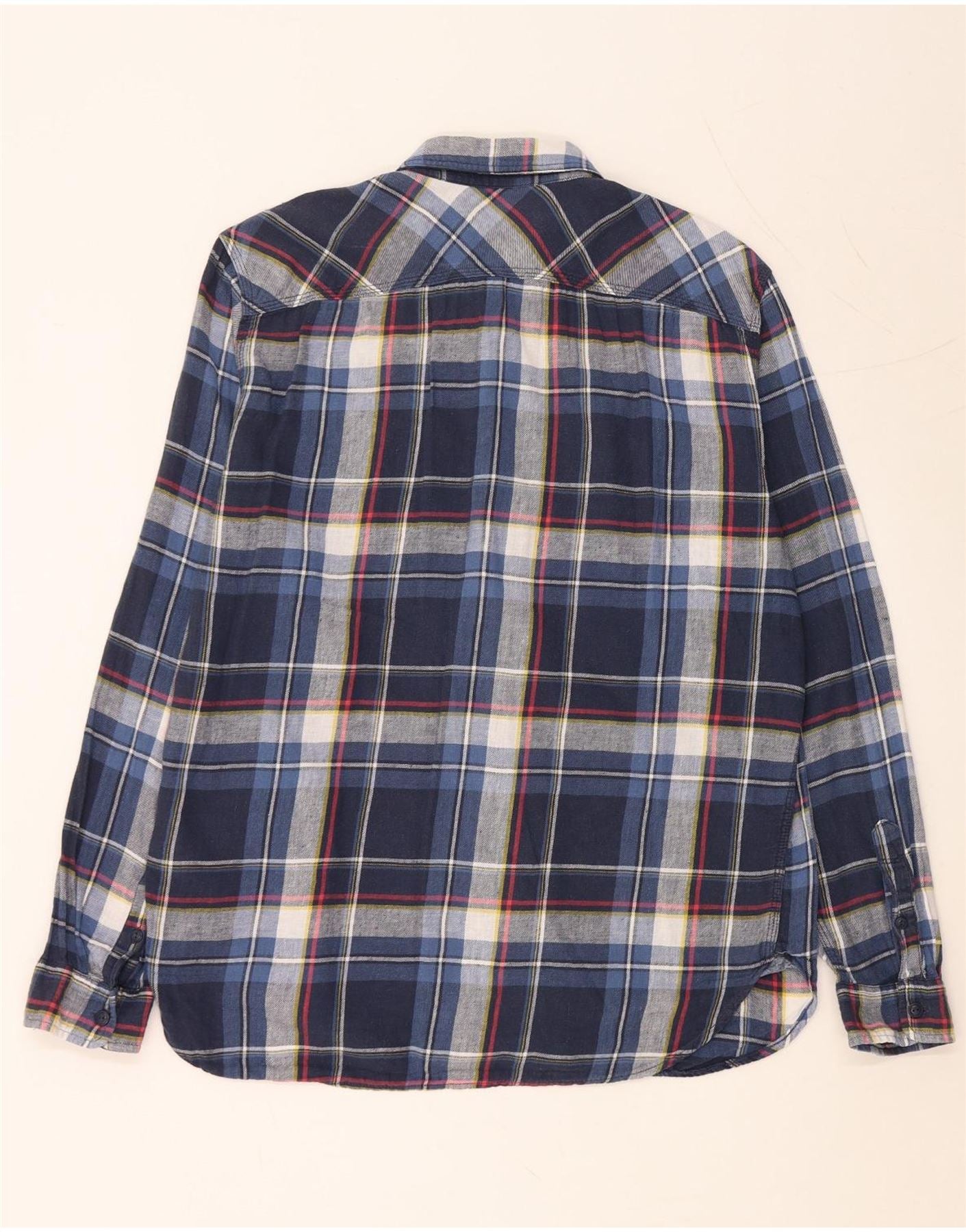 GAP Mens Flannel Shirt Large Navy Blue Check Linen