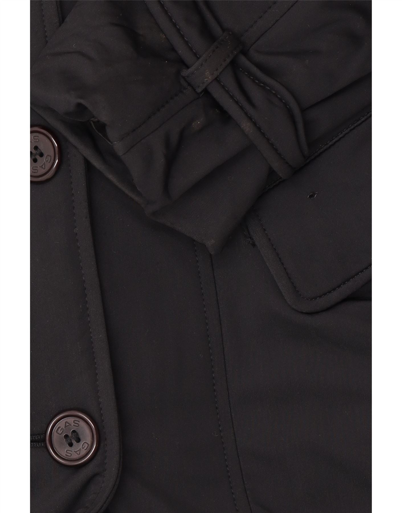 GAS Womens Double Breasted Trench Coat UK 10 Small Black Polyamide
