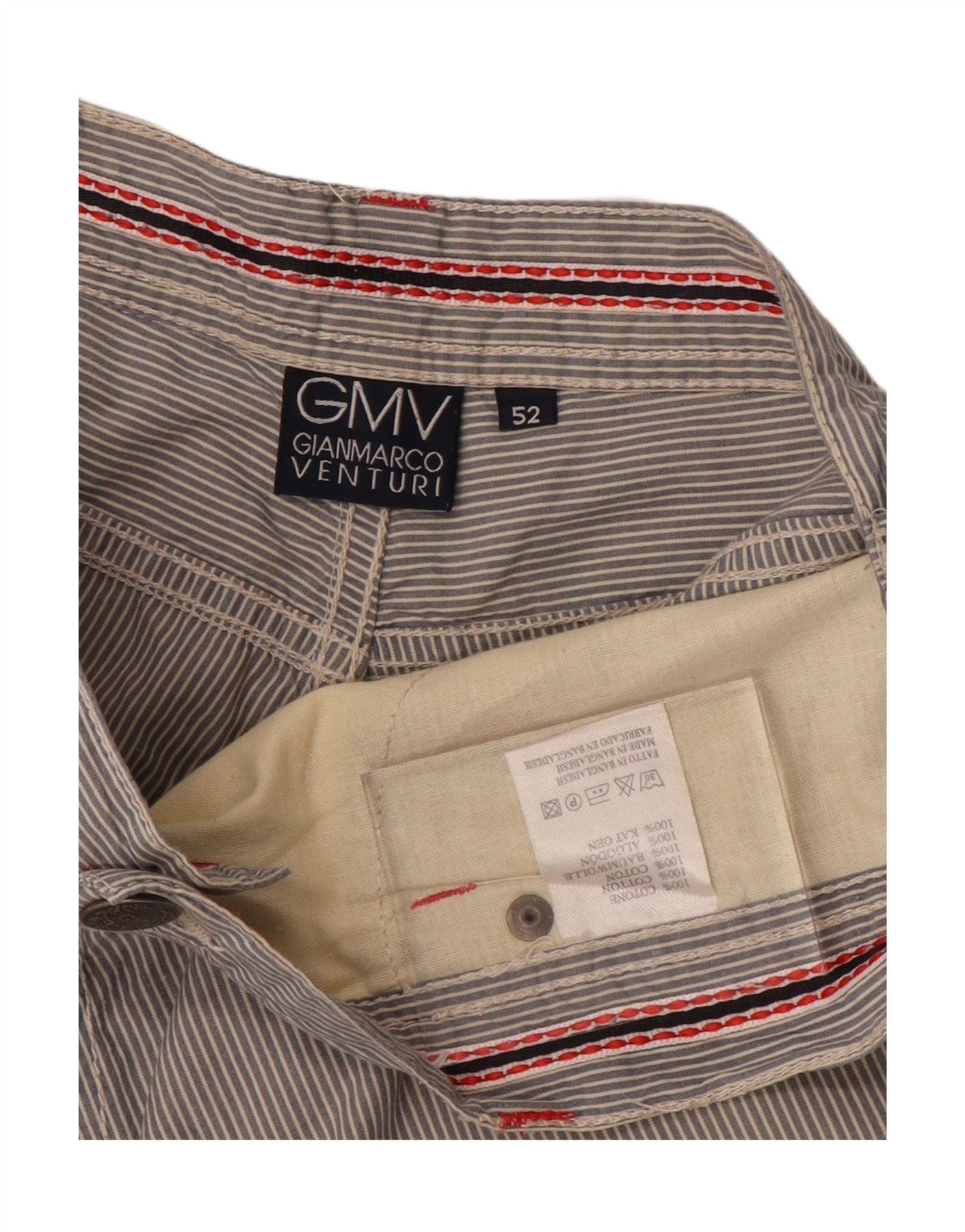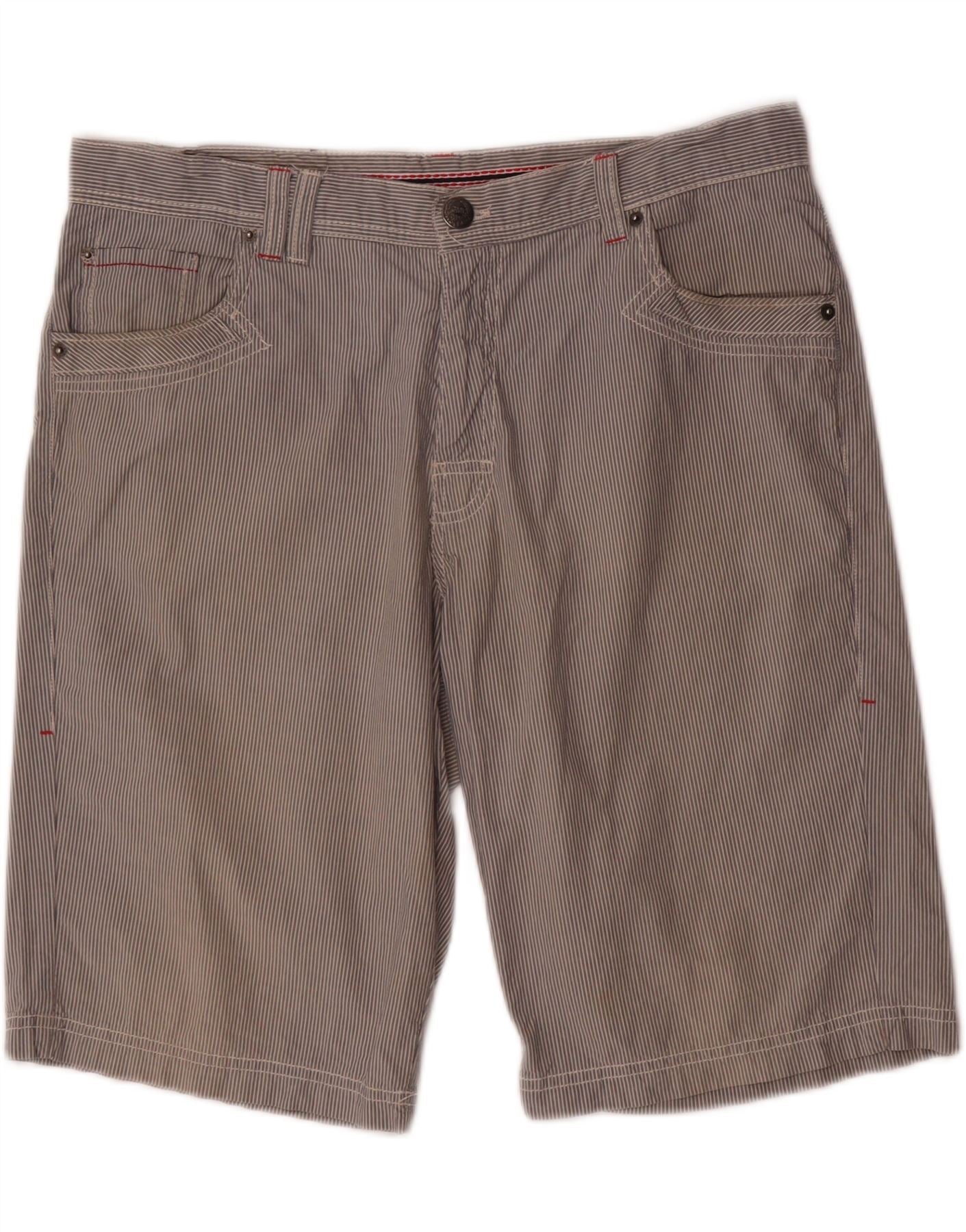 GIANMARCO VENTURI Mens Casual Shorts IT 52 XL W34 Grey Striped Cotton