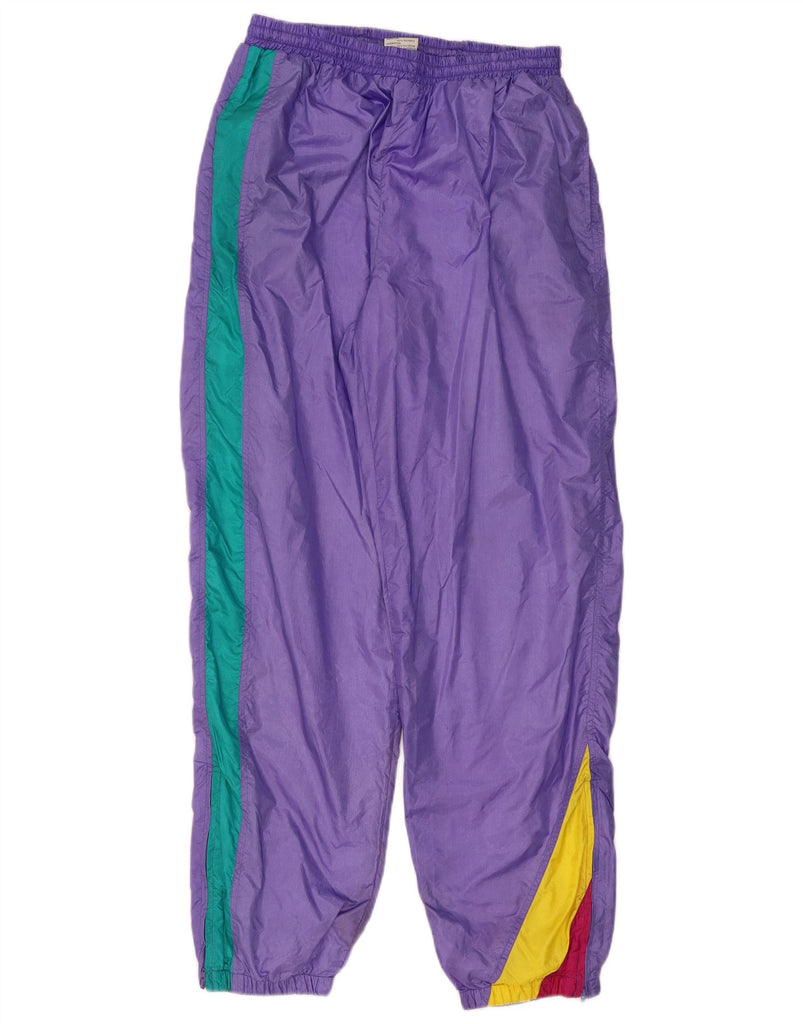 GOLDEN TEAM Mens Tracksuit Trousers Joggers Large Purple Colourblock