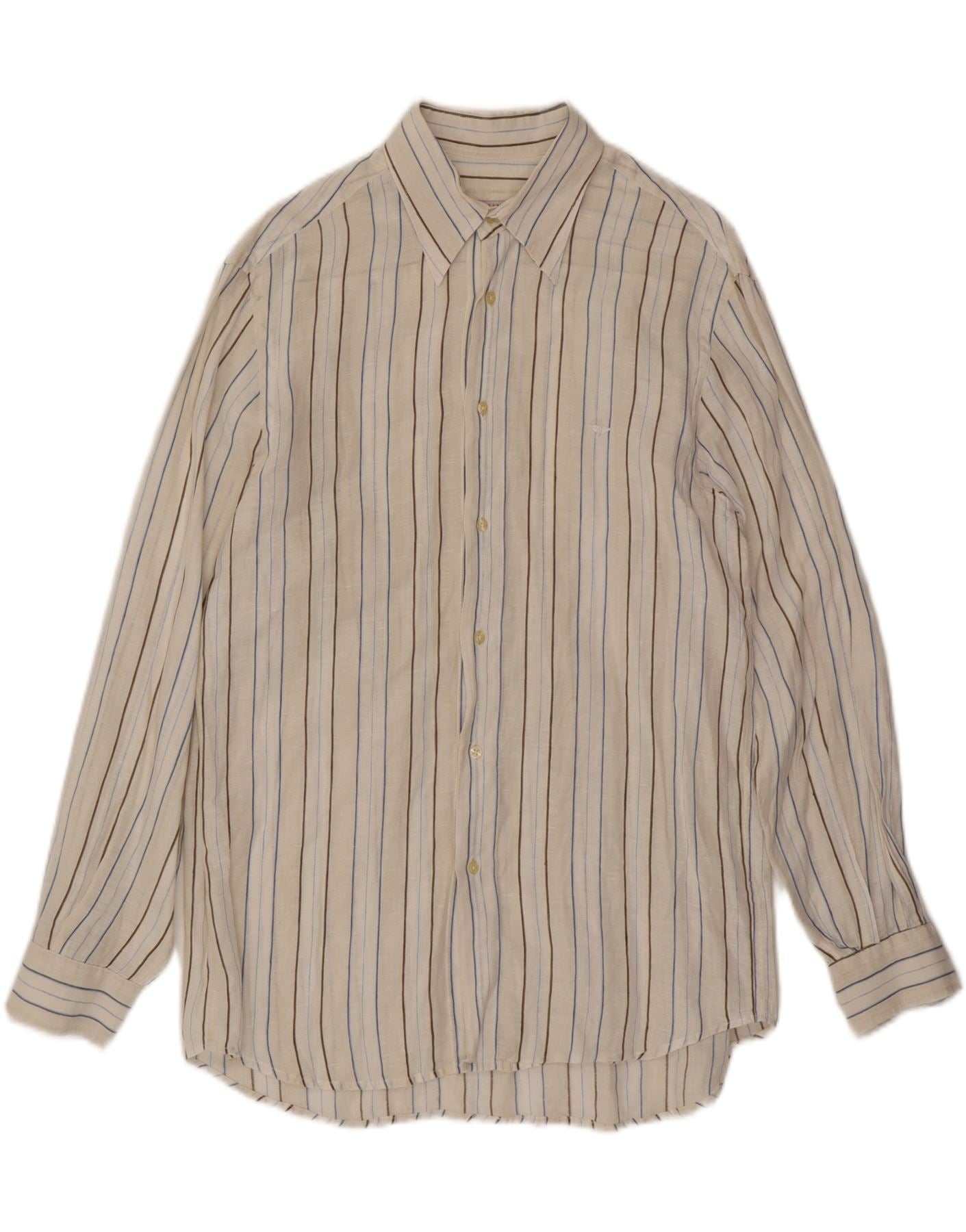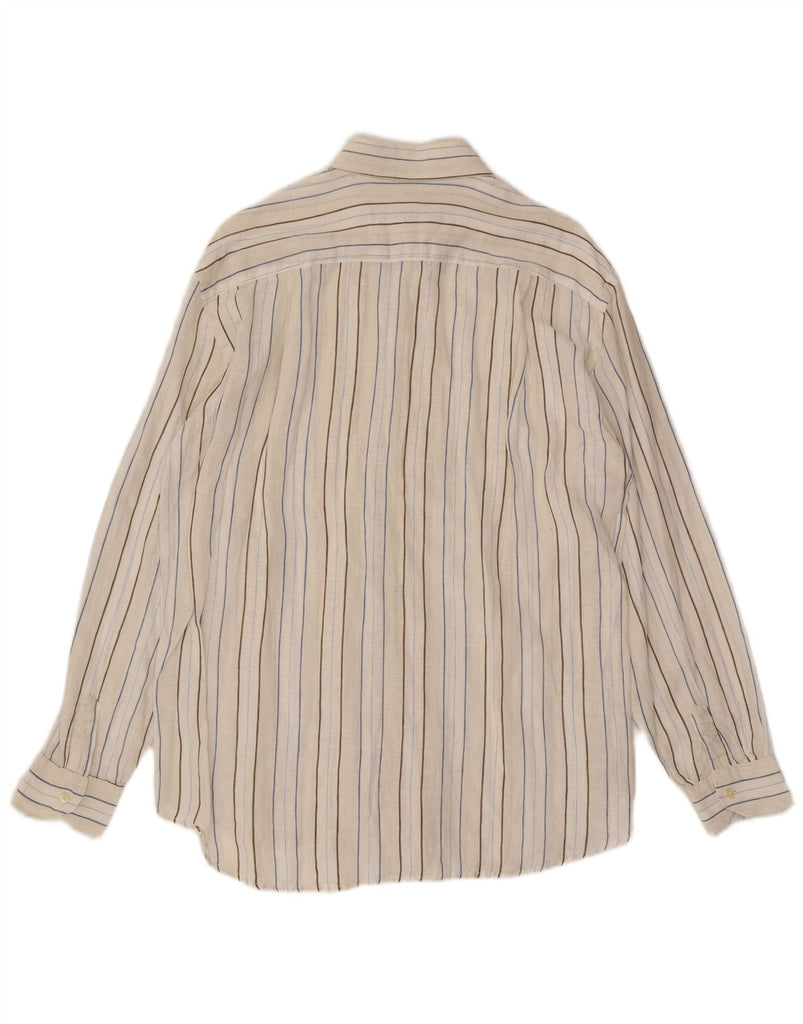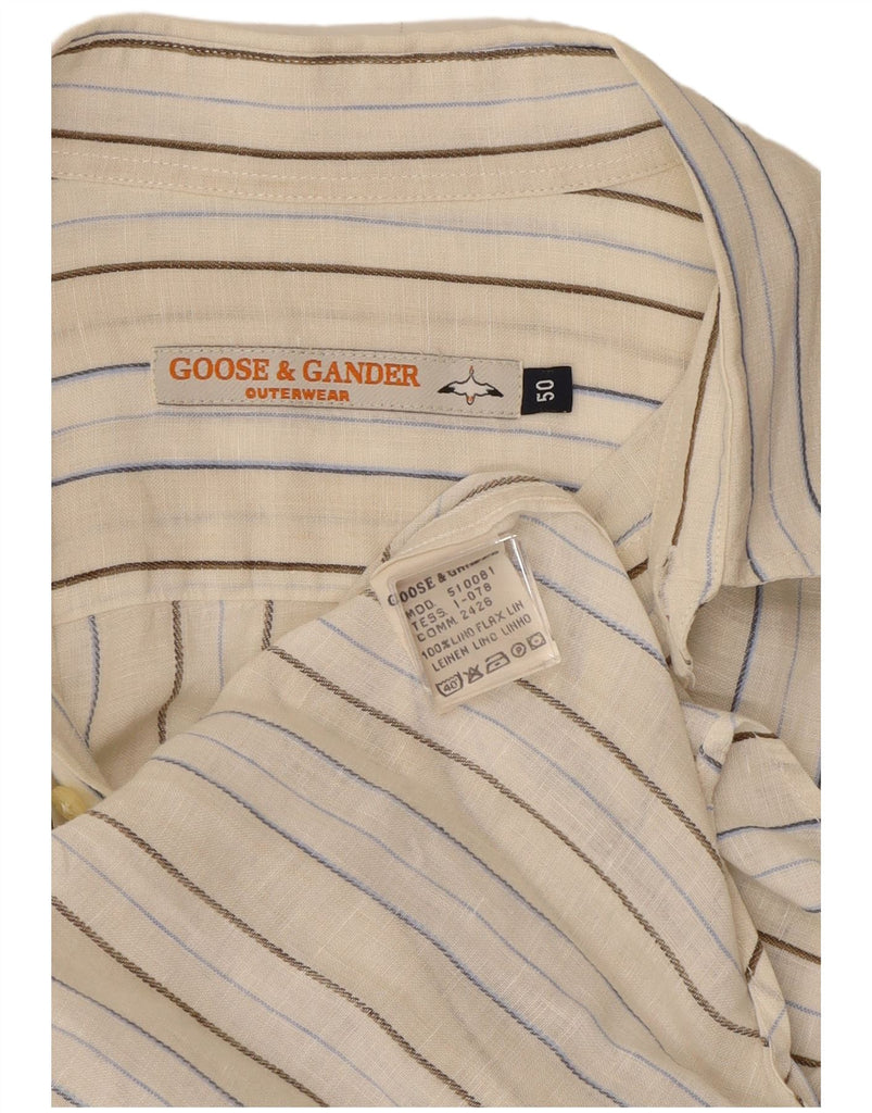 GOOSE & GANDER Mens Shirt IT 50 Medium Off White Striped Linen