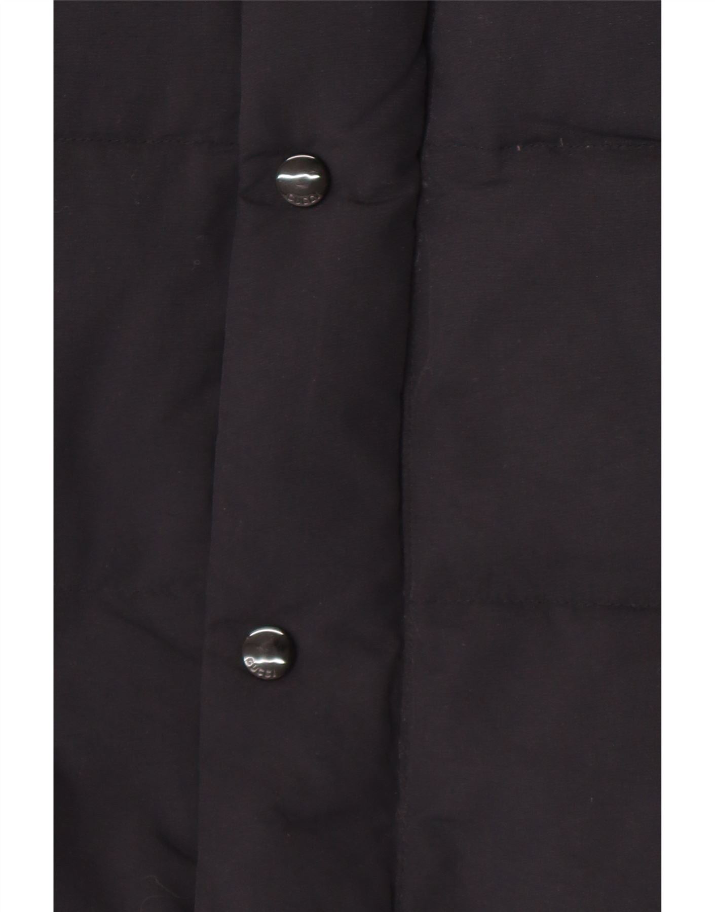 - AI Description: This Gucci mens padded coat is crafted from black polyamide, offering a smooth, durable finish. It features a warm down and feather filling for insulation. The long length and regular fit provide ample coverage. A high neck and hooded design offer extra protection. It fastens with a button closure. Large embroidered NY lettering adorns the front. The back showcases bold GUCCI XXV embroidery. Long sleeves and practical pockets complete the design.