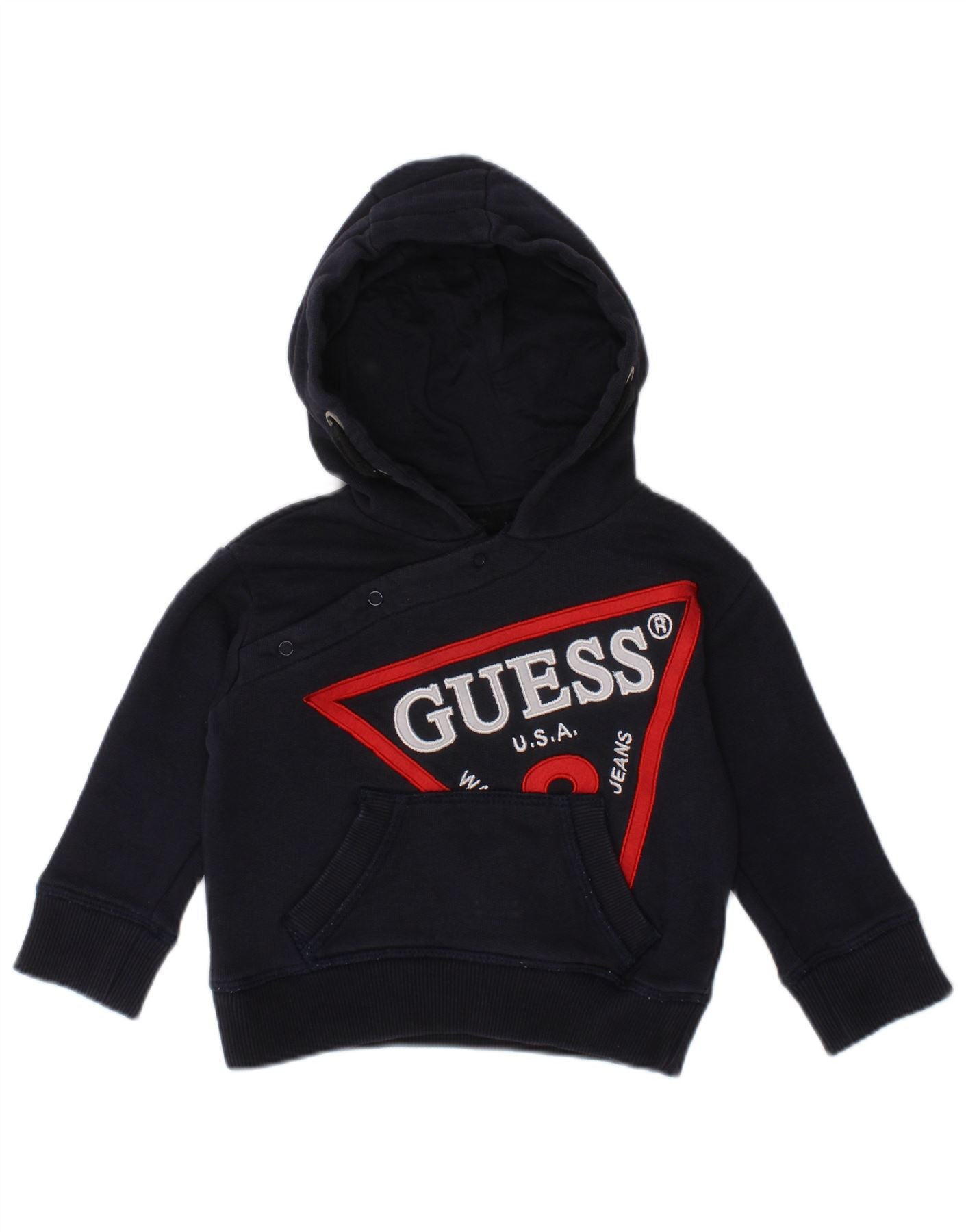 GUESS Baby Boys Graphic Hoodie Jumper 3-6 Months Navy Blue Cotton