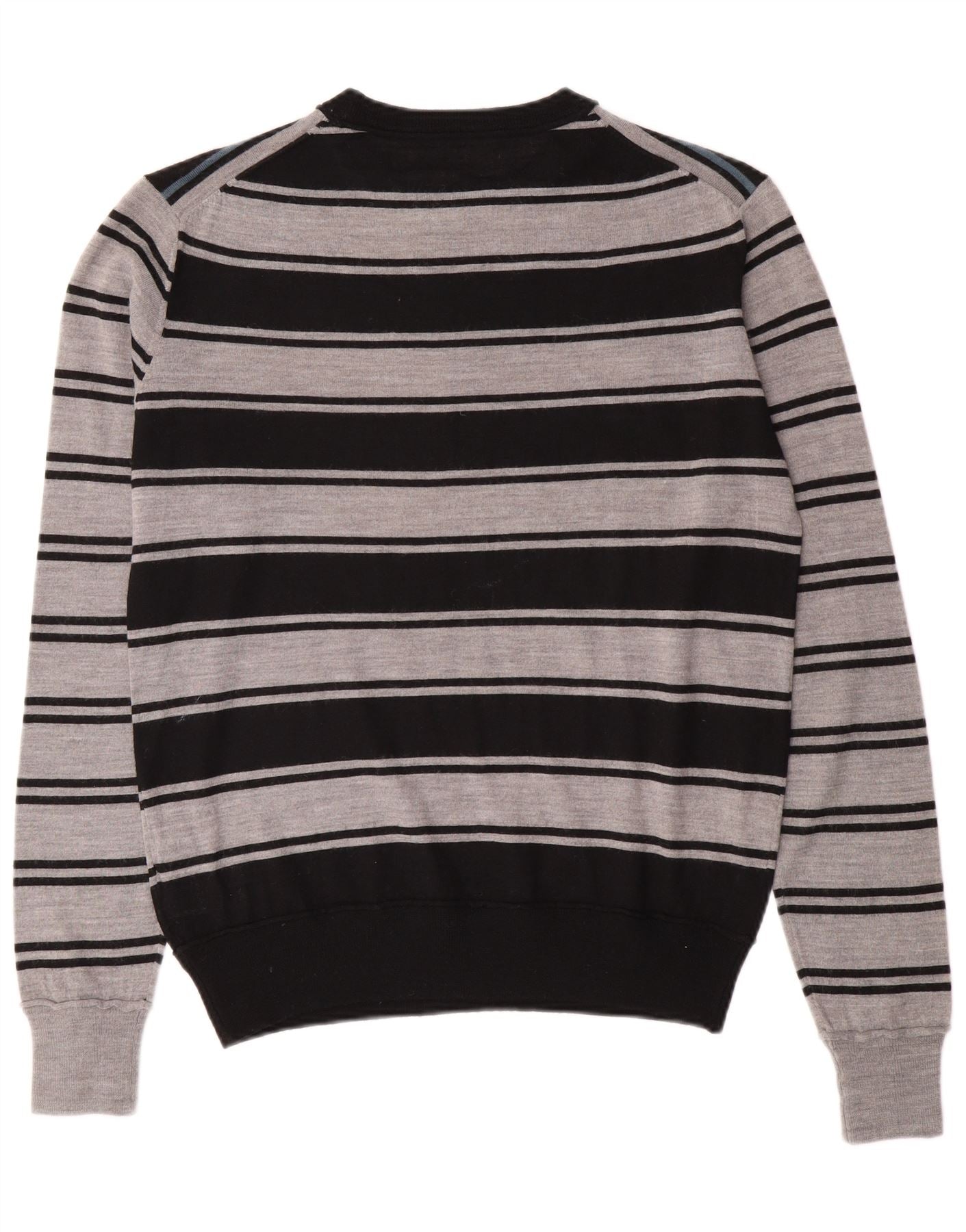 GUESS Mens Crew Neck Jumper Sweater Medium Black Striped Acrylic