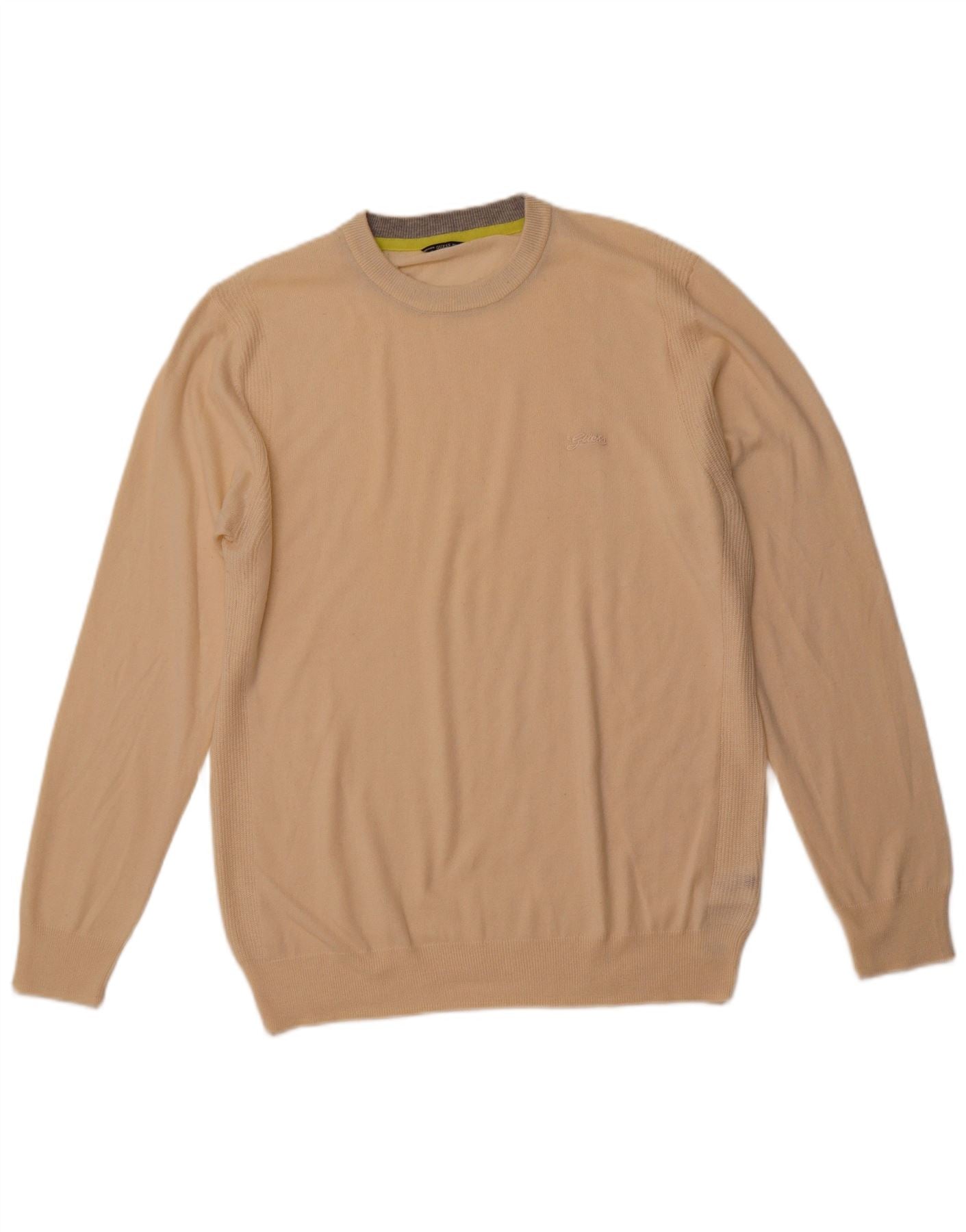 GUESS Mens Crew Neck Jumper Sweater UK 44 2XL Beige Polyamide