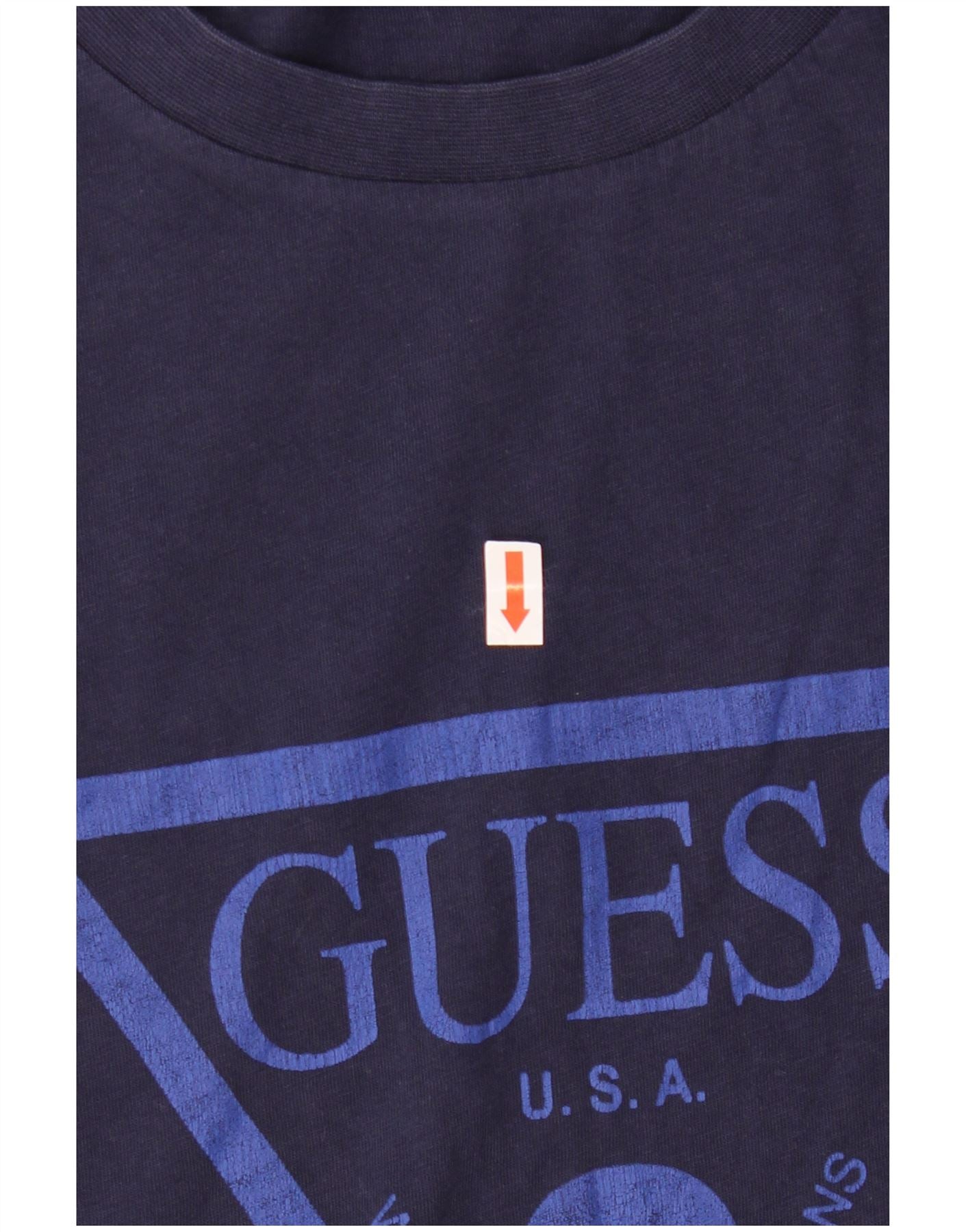 GUESS Mens Graphic T-Shirt Top Large Navy Blue Cotton