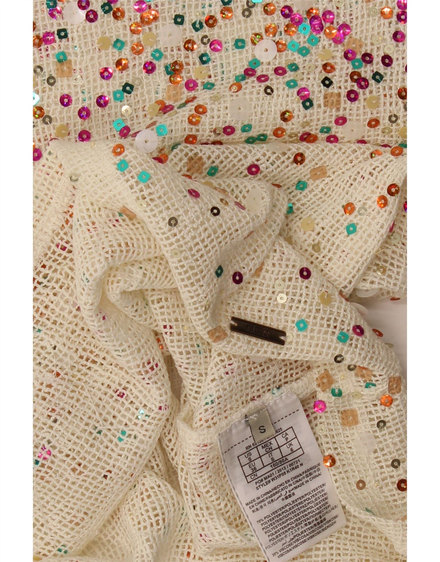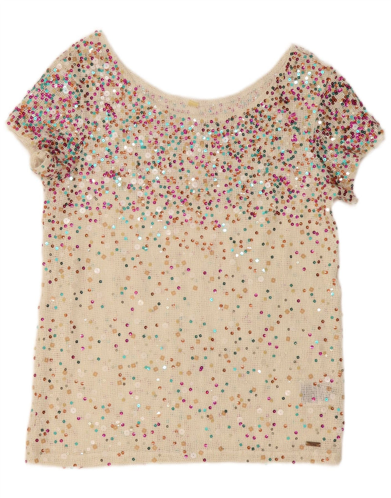 GUESS Womens Sequin Crochet Blouse Top UK 10 Small Off White Polyester