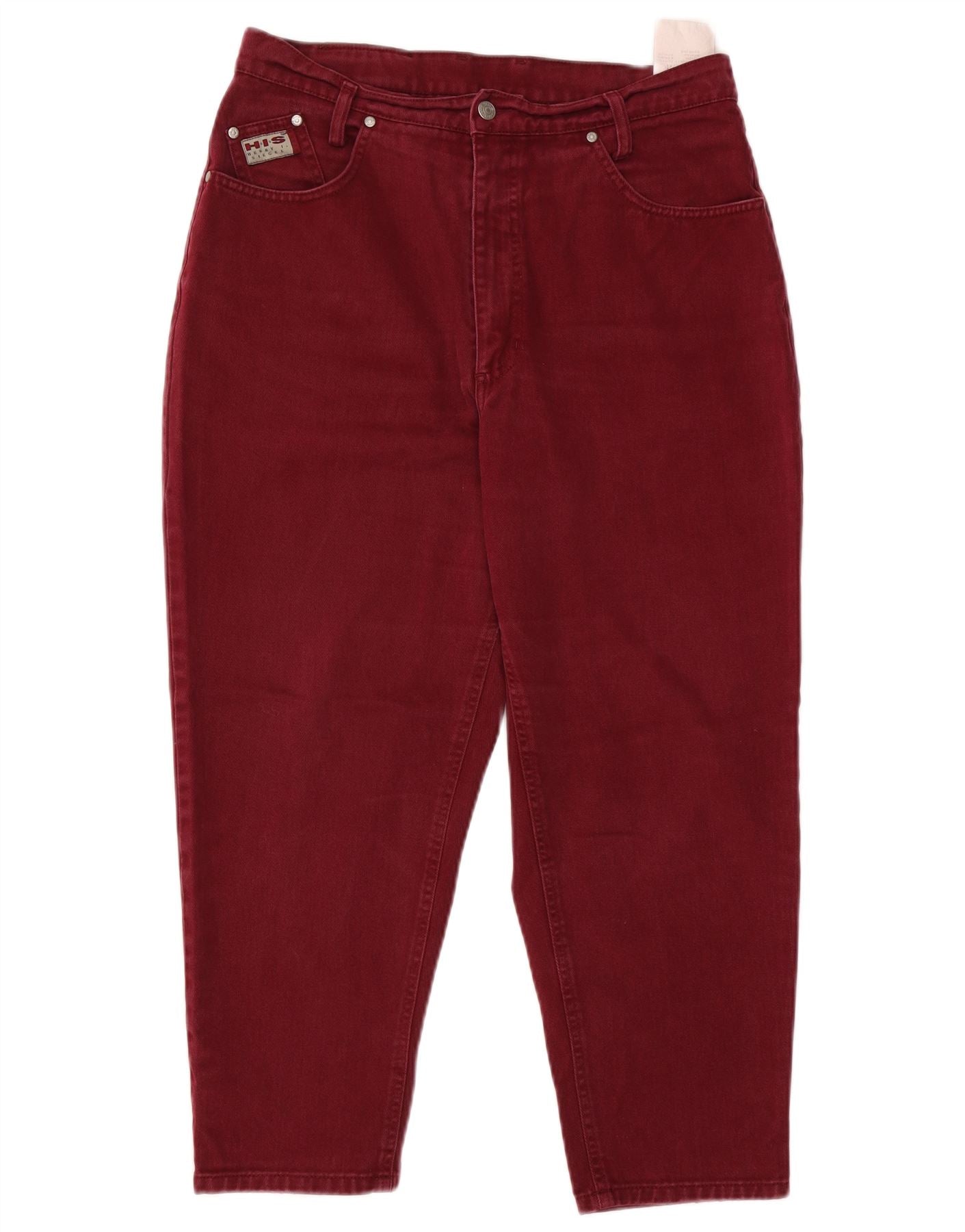 H.I.S Womens High Waist Crop Tapered Jeans UK 20 2XL W34 L25 Burgundy