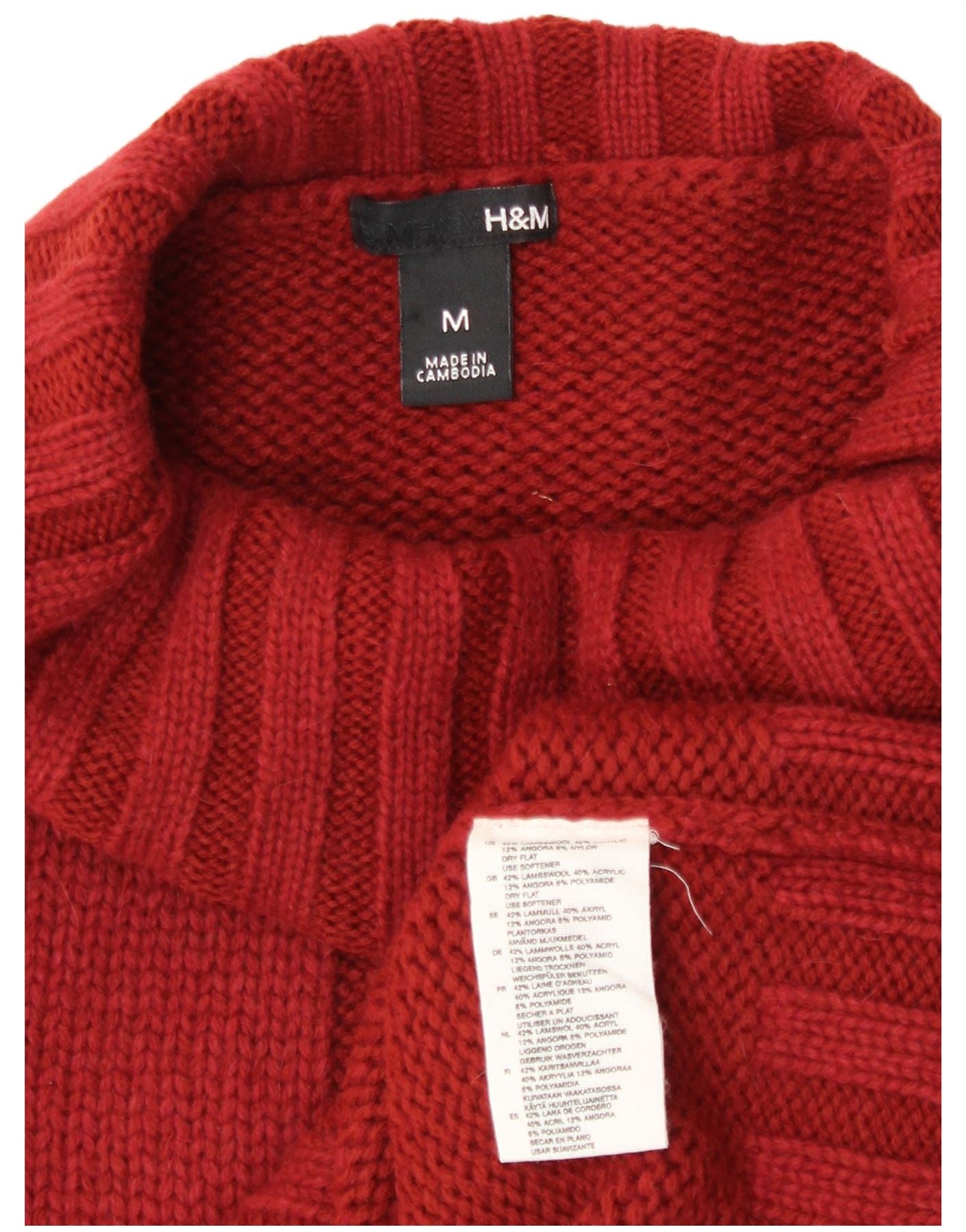 H&M Womens Roll Neck Jumper Sweater UK 14 Medium Burgundy Lambswool