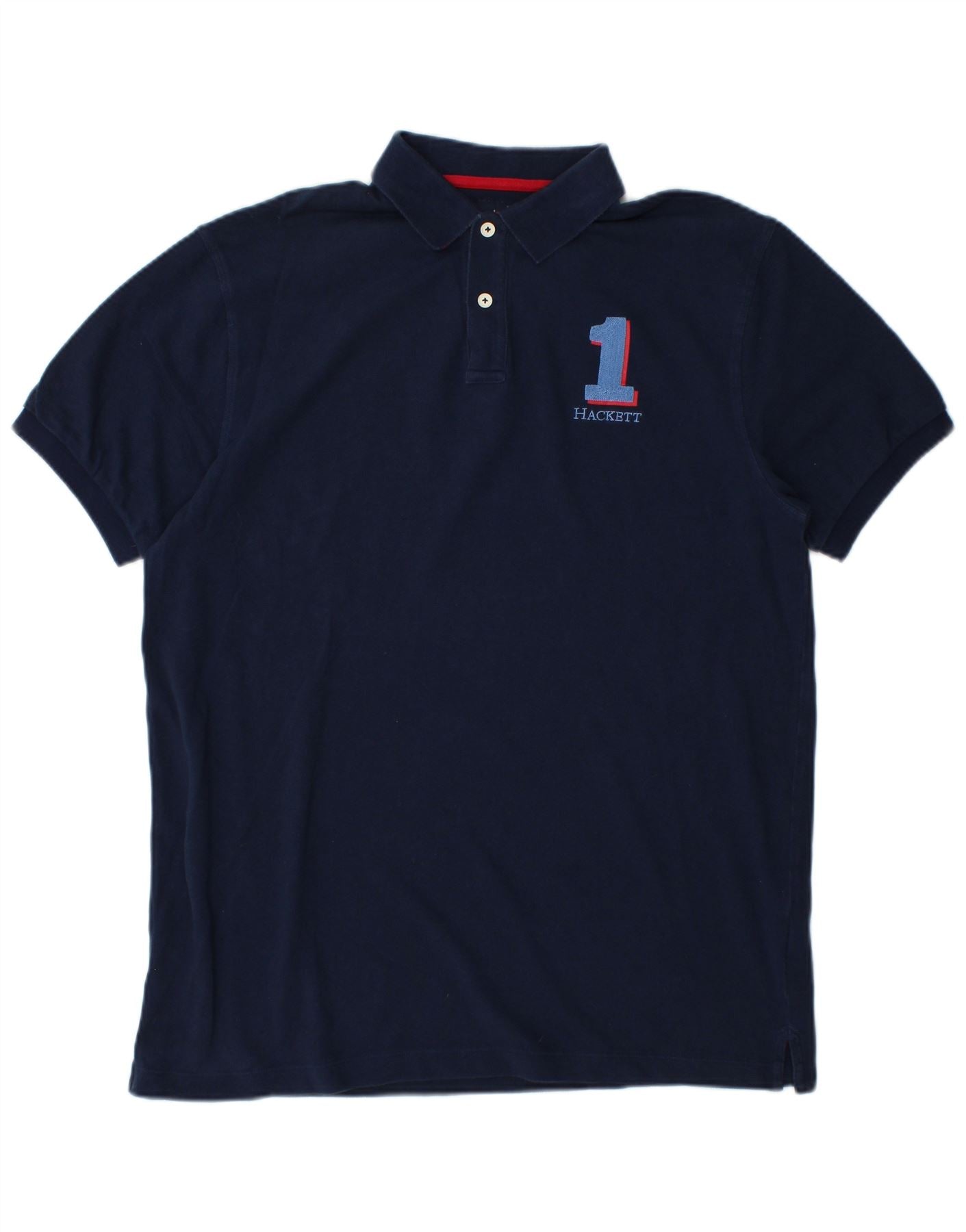 HACKETT Mens Classic Fit Graphic Polo Shirt Large Navy Blue Cotton