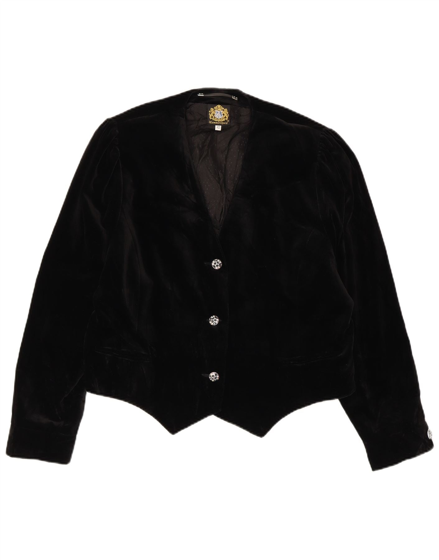 HAMMERSCHMID Womens Velvet 3 Button Blazer Jacket EU 42 Large Black Cotton