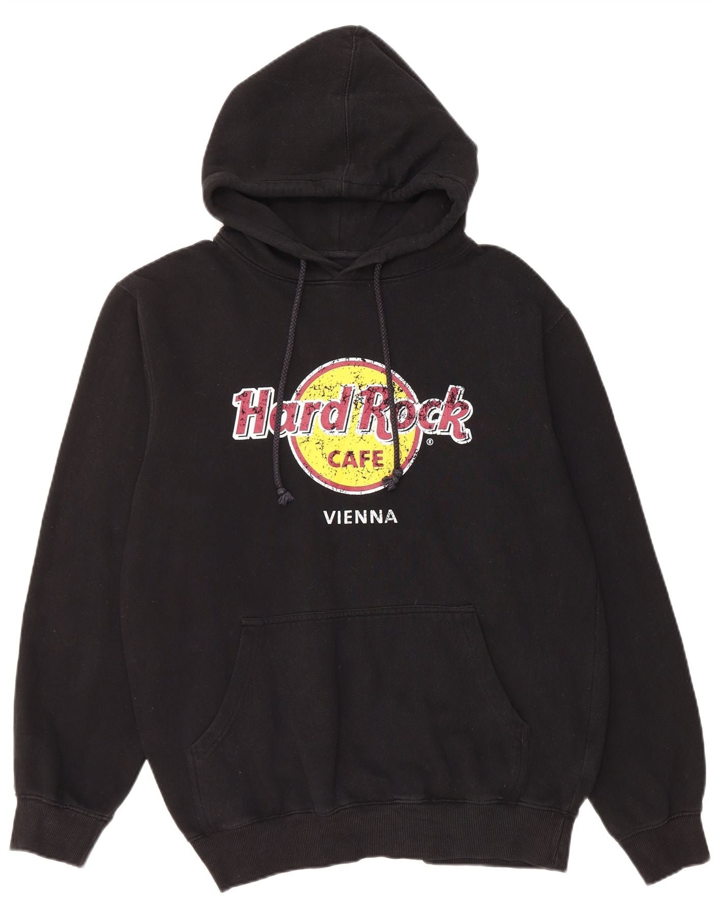 HARD ROCK CAFE Mens Vienna Graphic Hoodie Jumper Large Black Cotton