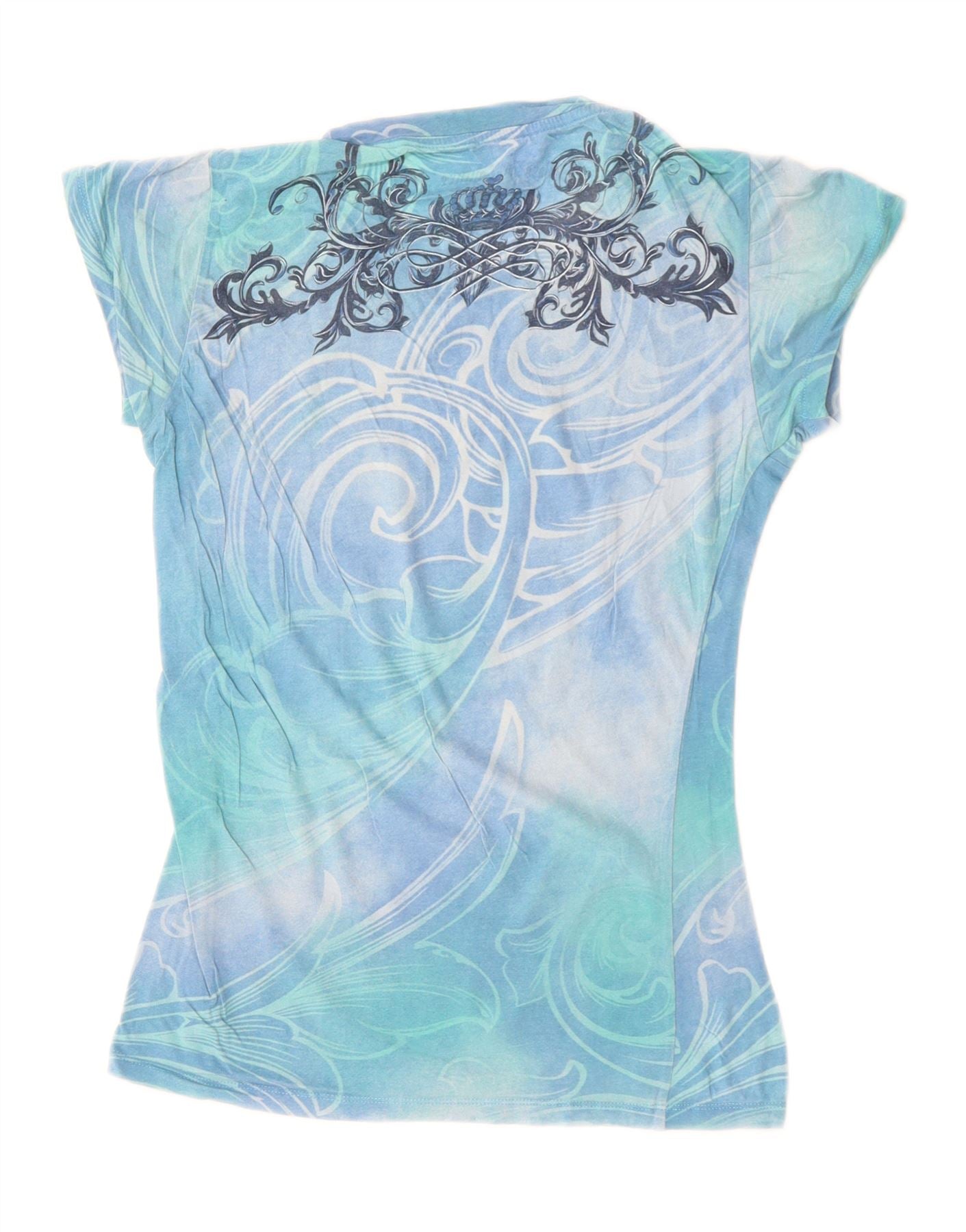 HARD ROCK CAFE Womens Couture Graphic T-Shirt Top UK 8 Small Blue Tie Dye
