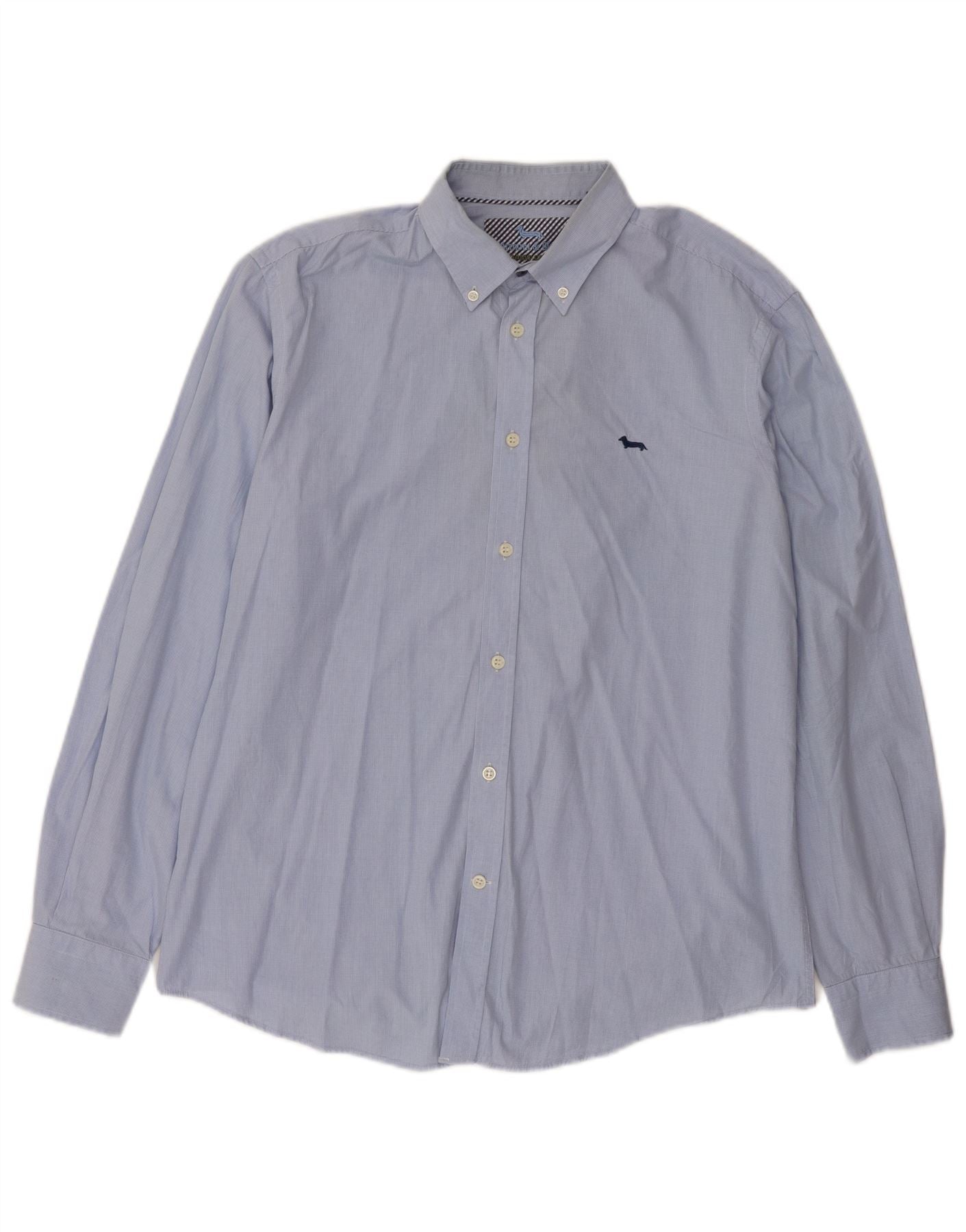 - AI Description: This Harmont & Blaine mens shirt is crafted from soft organic cotton, featuring a subtle blue check weave. The collared neckline includes button-down detailing for a smart finish. Long sleeves end in neat buttoned cuffs, enhancing the tailored look. A full button-up front ensures a classic silhouette. The regular fit offers comfortable wear, complemented by a discreet embroidered logo on the chest.