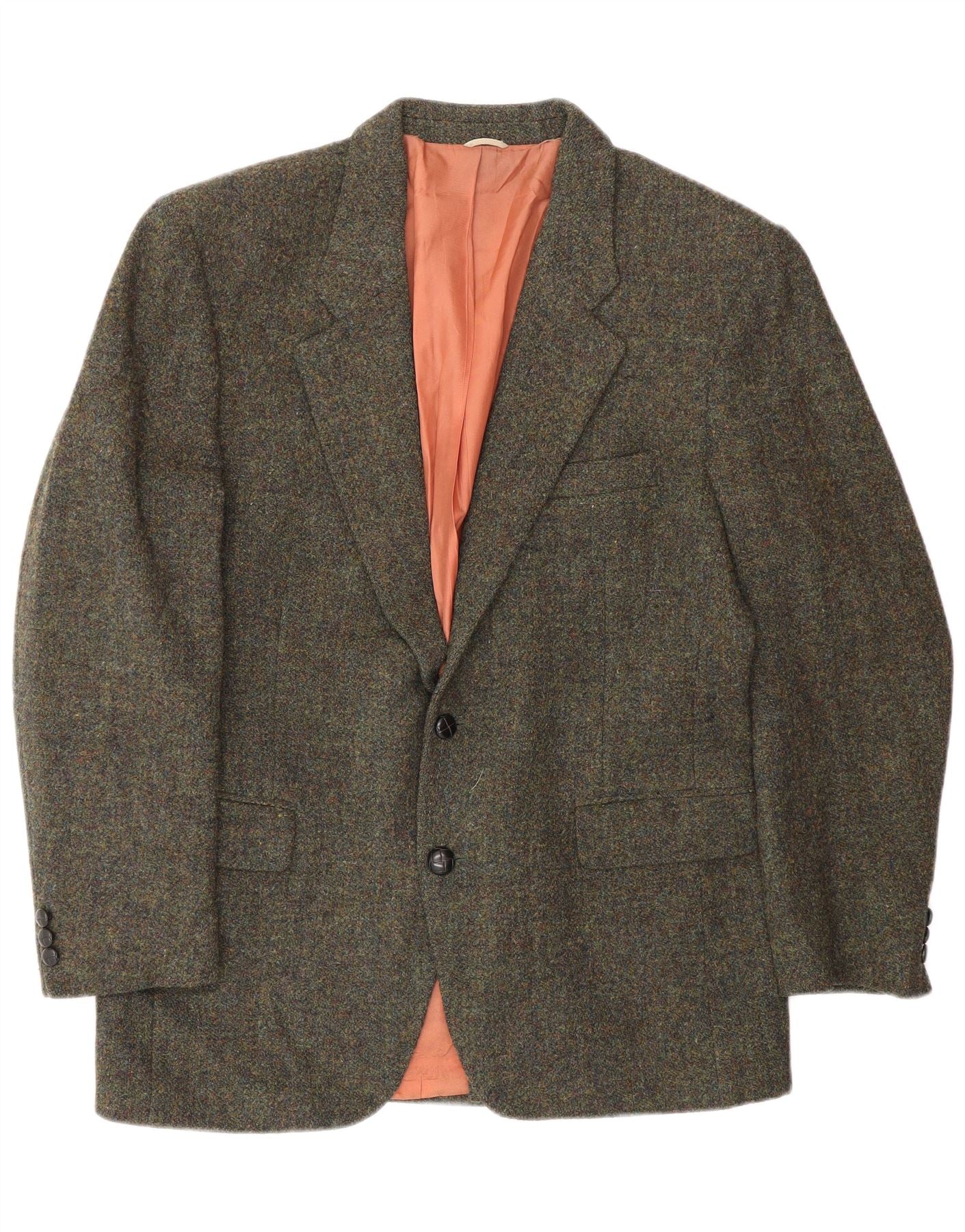 HARRIS TWEED Mens 2 Button Blazer Jacket UK 40 Large Green Virgin Wool