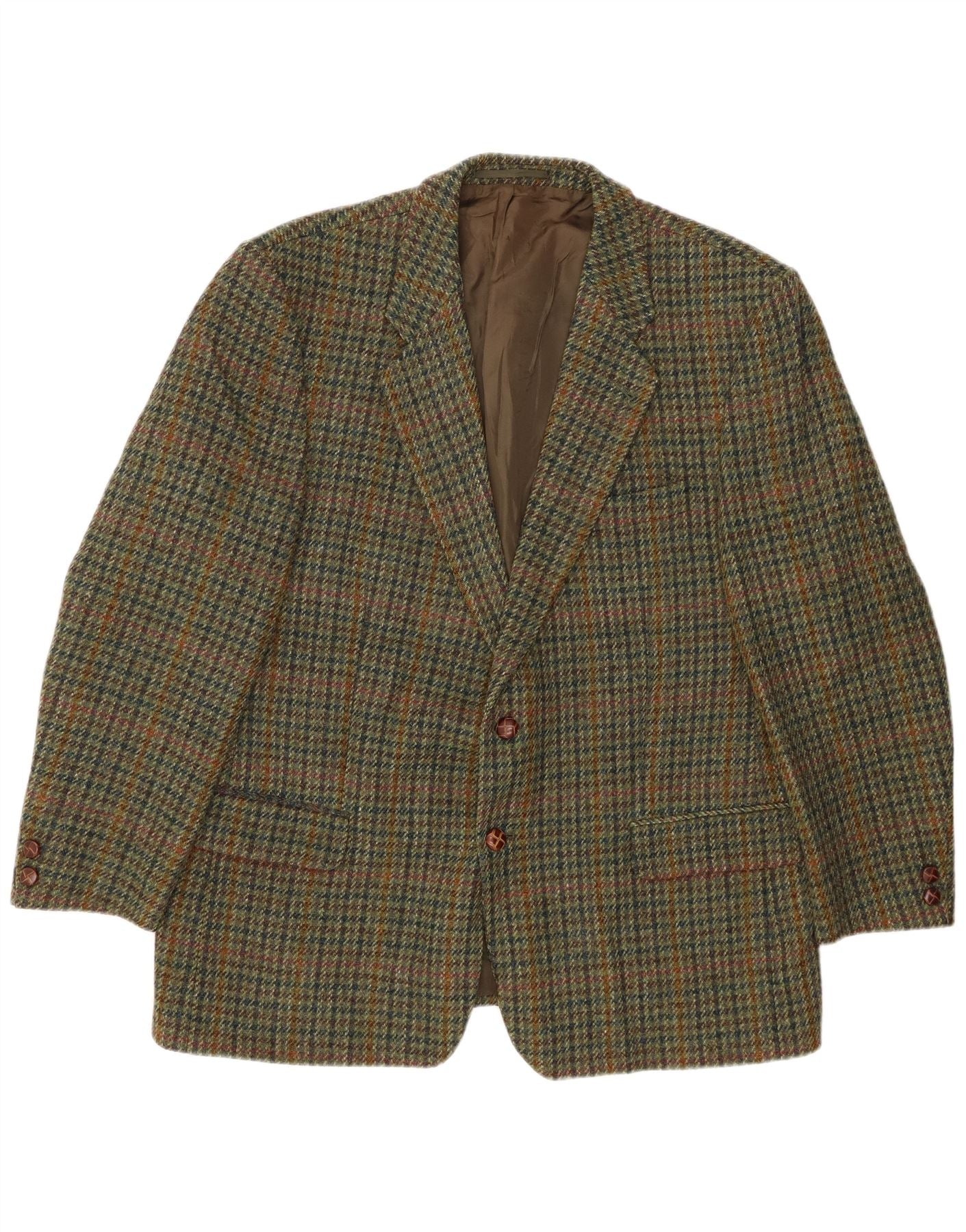 HARRIS TWEED Mens 2 Button Blazer Jacket UK 40 Large Khaki Houndstooth