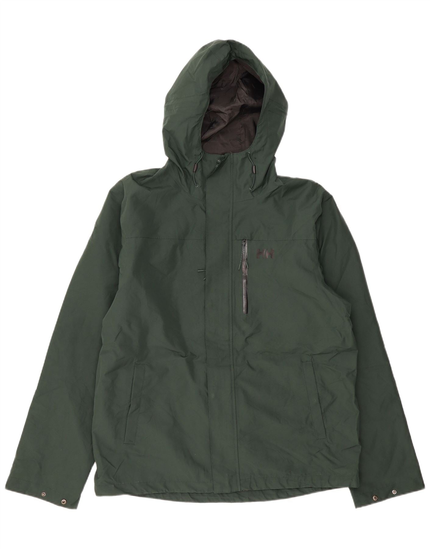 HELLY HANSEN Mens Hooded Rain Jacket UK 40 Large Green Polyester