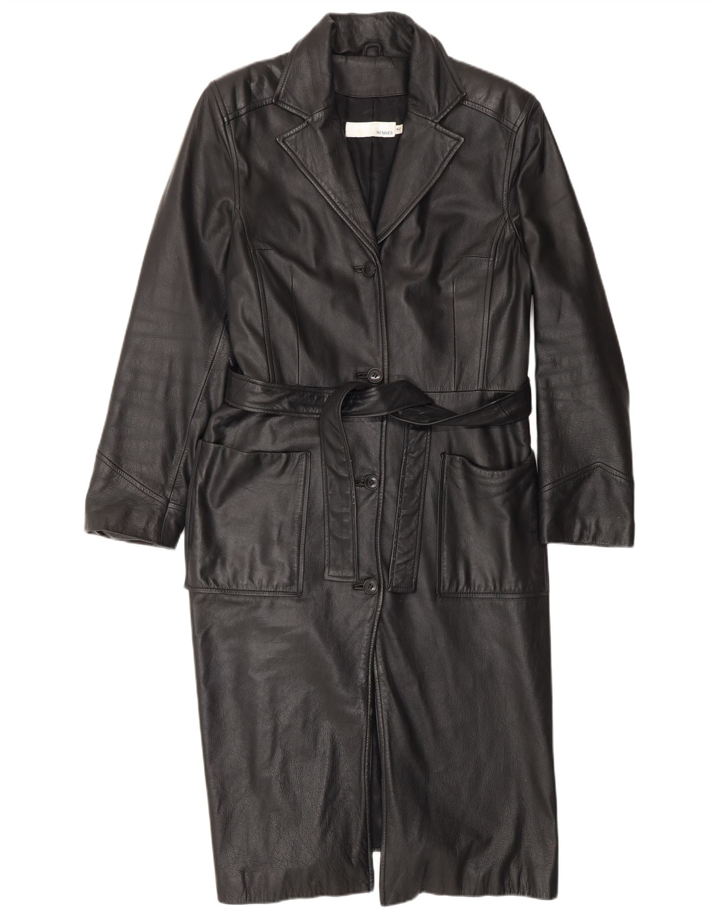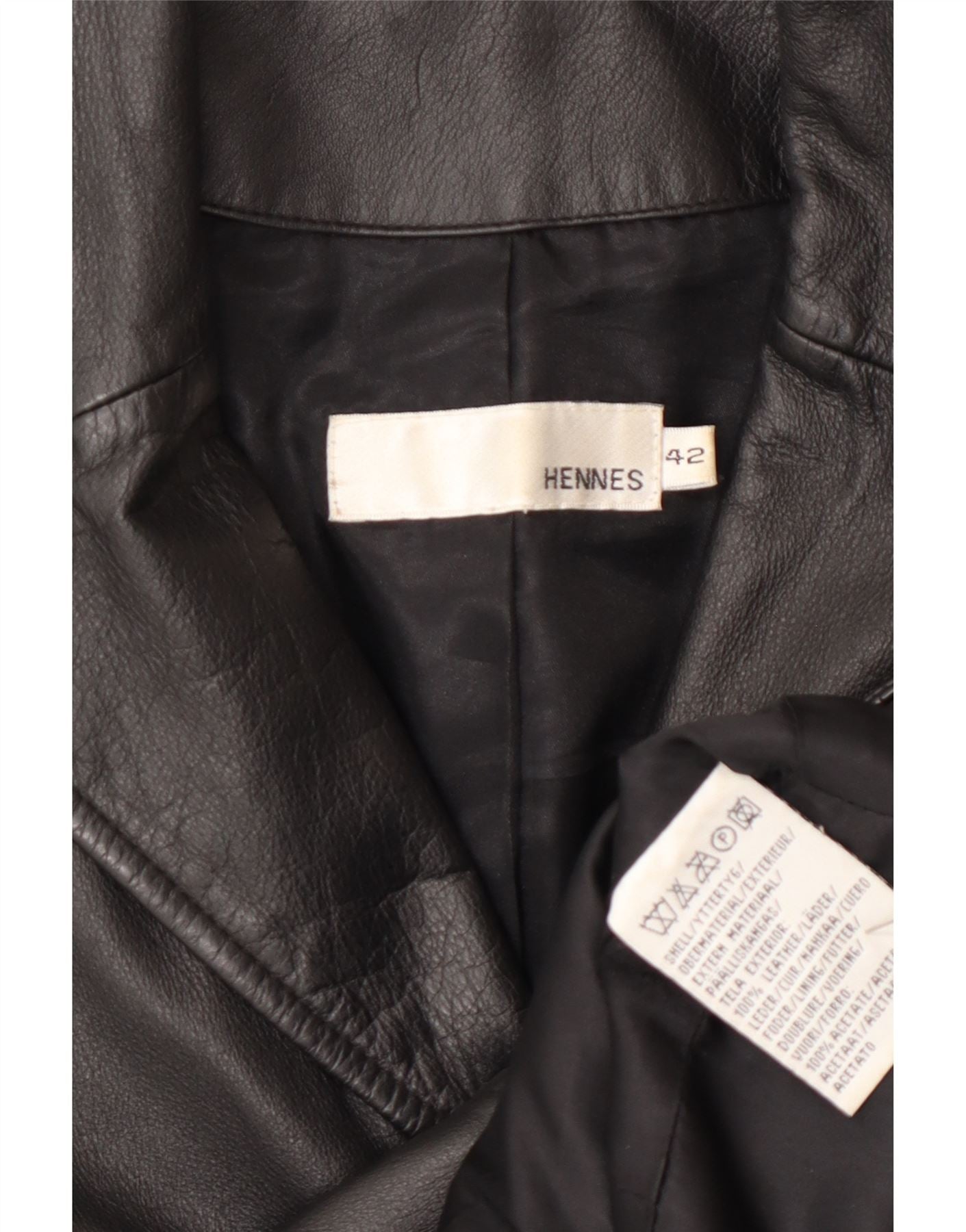HENNES Womens Leather Coat EU 42 Large Black Leather