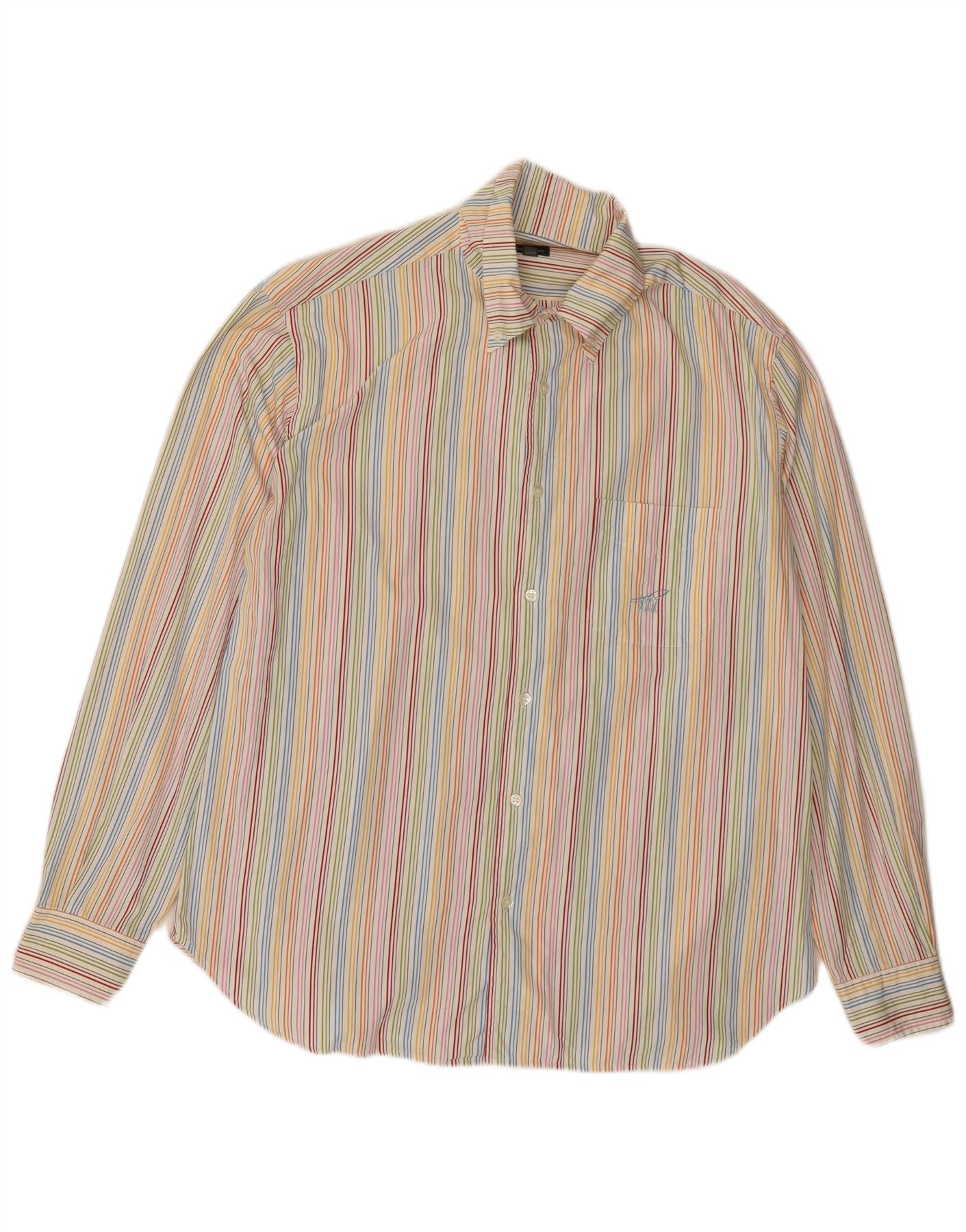 HENRY COTTONS Mens Shirt Size 44 XL Multicoloured Pinstripe Cotton