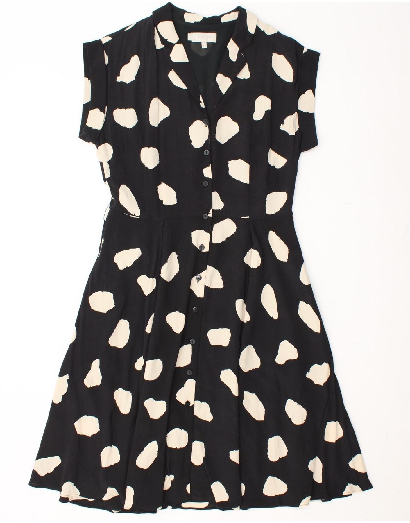 HOBBS Womens Abstract Pattern A-Line Dress UK 10 Small Black Viscose