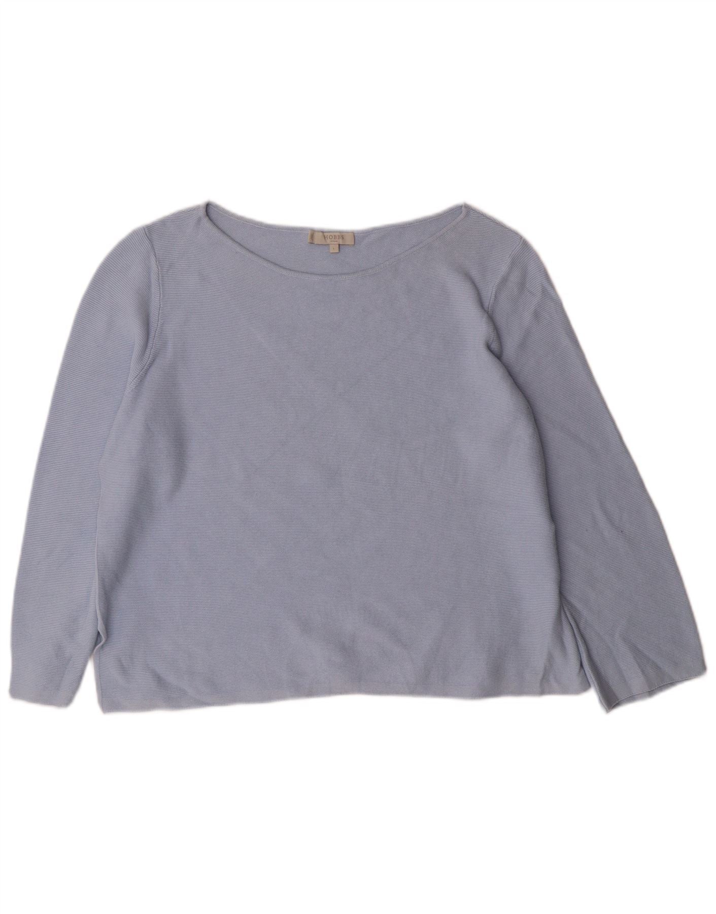 Hobbs Womens Boat Neck Jumper Sweater UK 16 Large Blue Cotton Classic