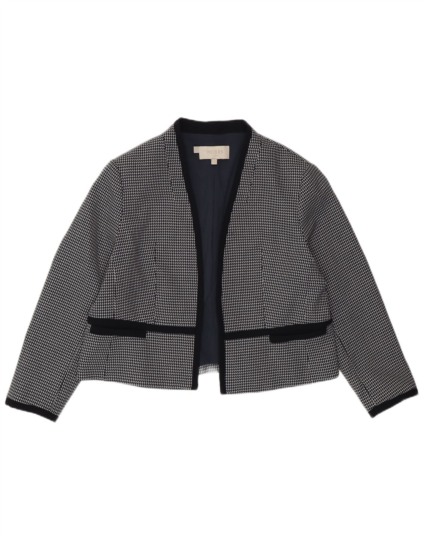 Hobbs Womens Crop Open Blazer Jacket UK 18 XL Navy Blue Geometric Polyester