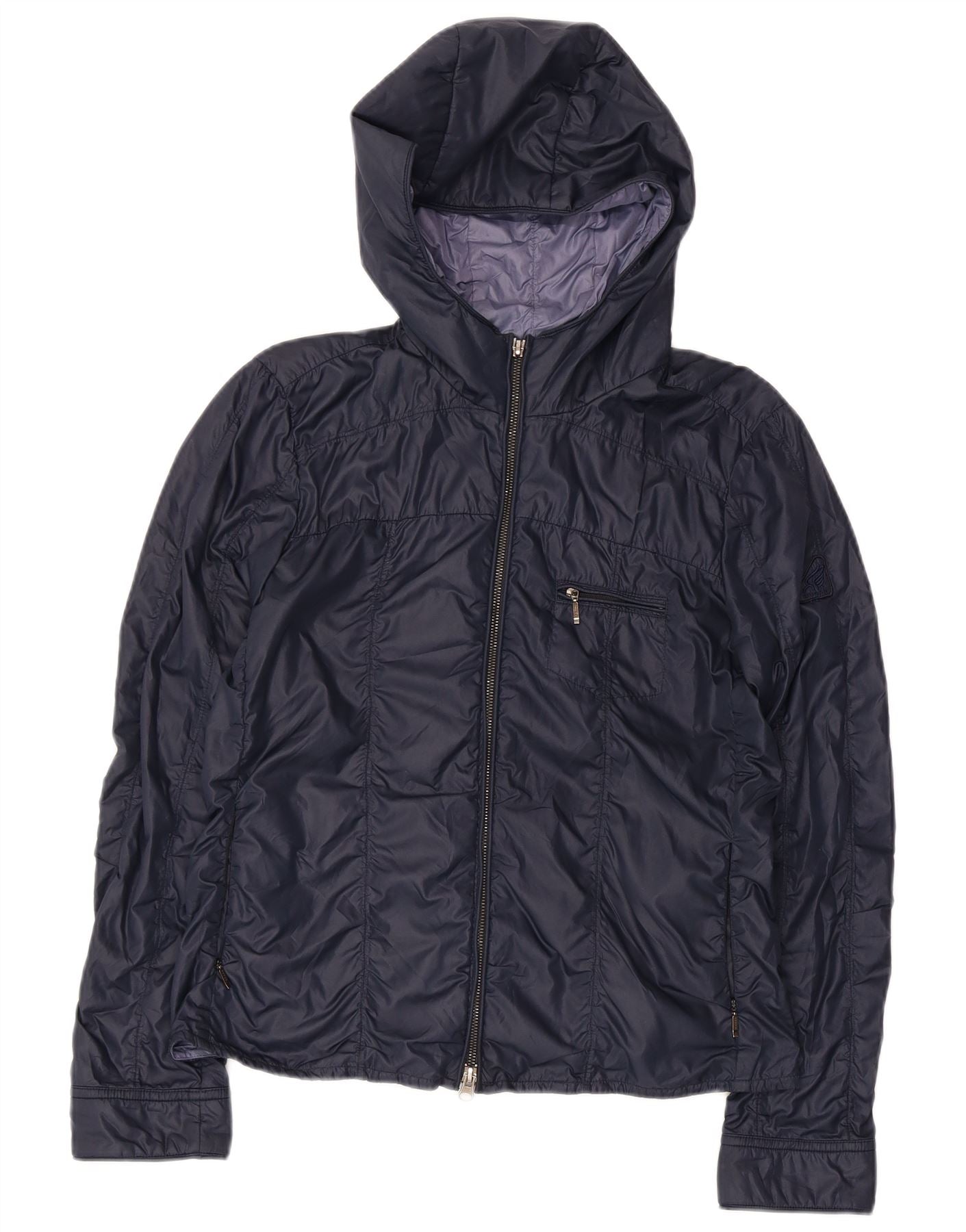 HOGAN Womens Hooded Bomber Jacket IT 44 Medium Navy Blue