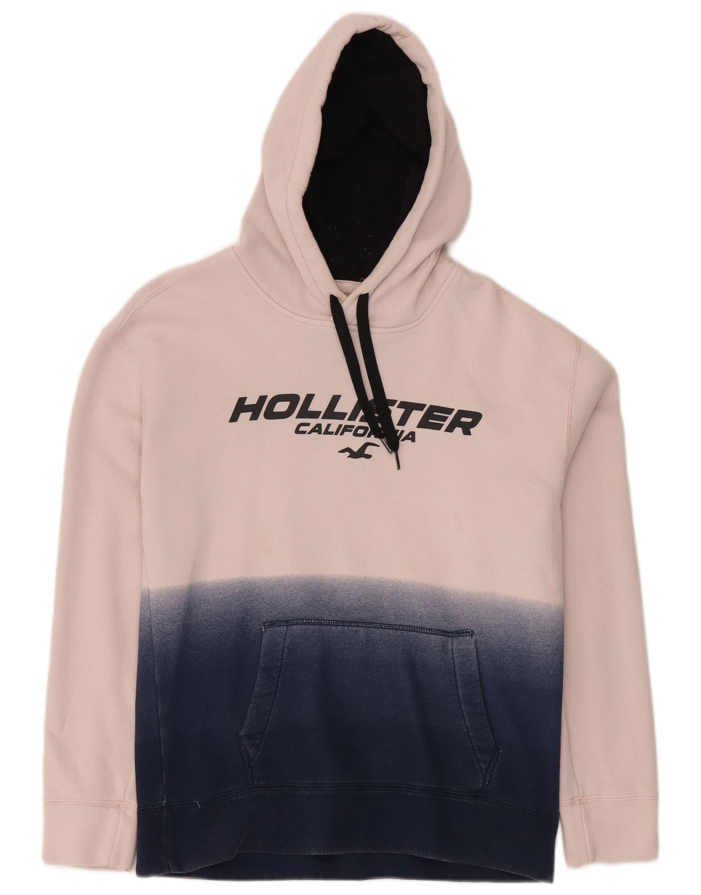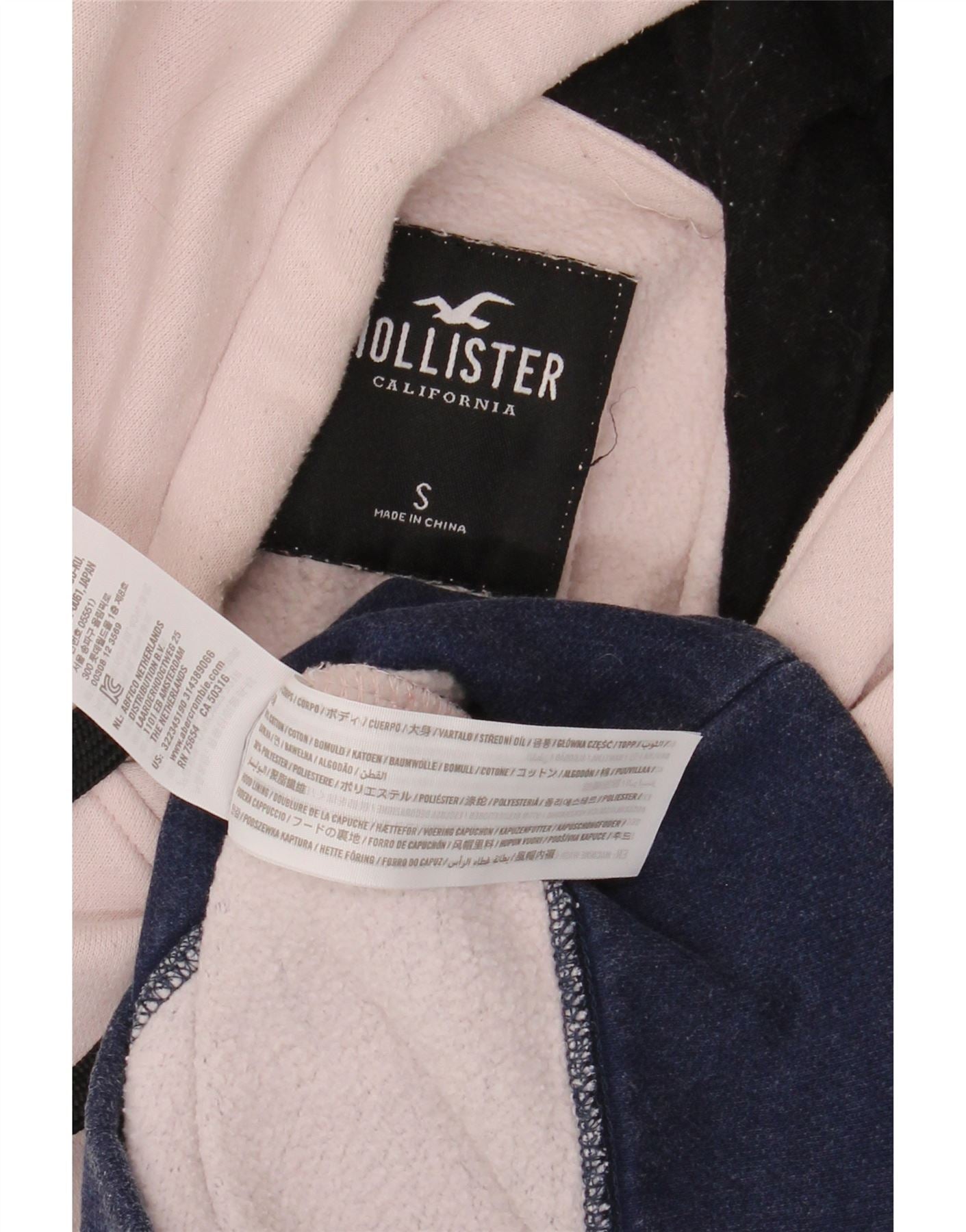 HOLLISTER Mens Graphic Hoodie Jumper Small Pink Colourblock Cotton