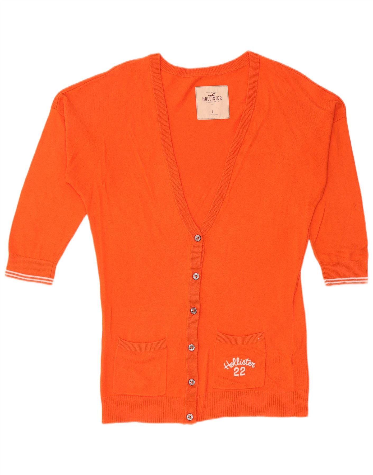 HOLLISTER Womens 3/4 Sleeve Cardigan Sweater UK 16 Large Orange Cotton