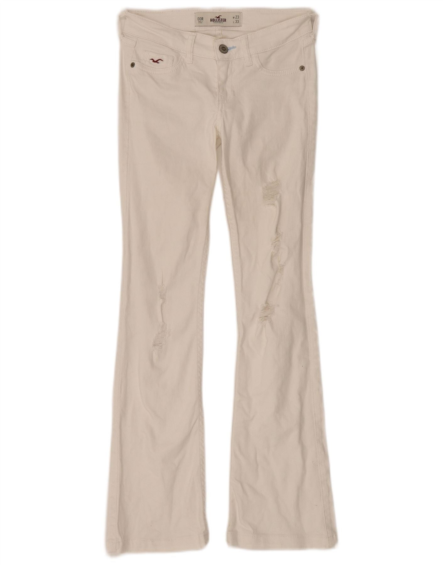 HOLLISTER Womens Distressed Flared Jeans W23 L33 White