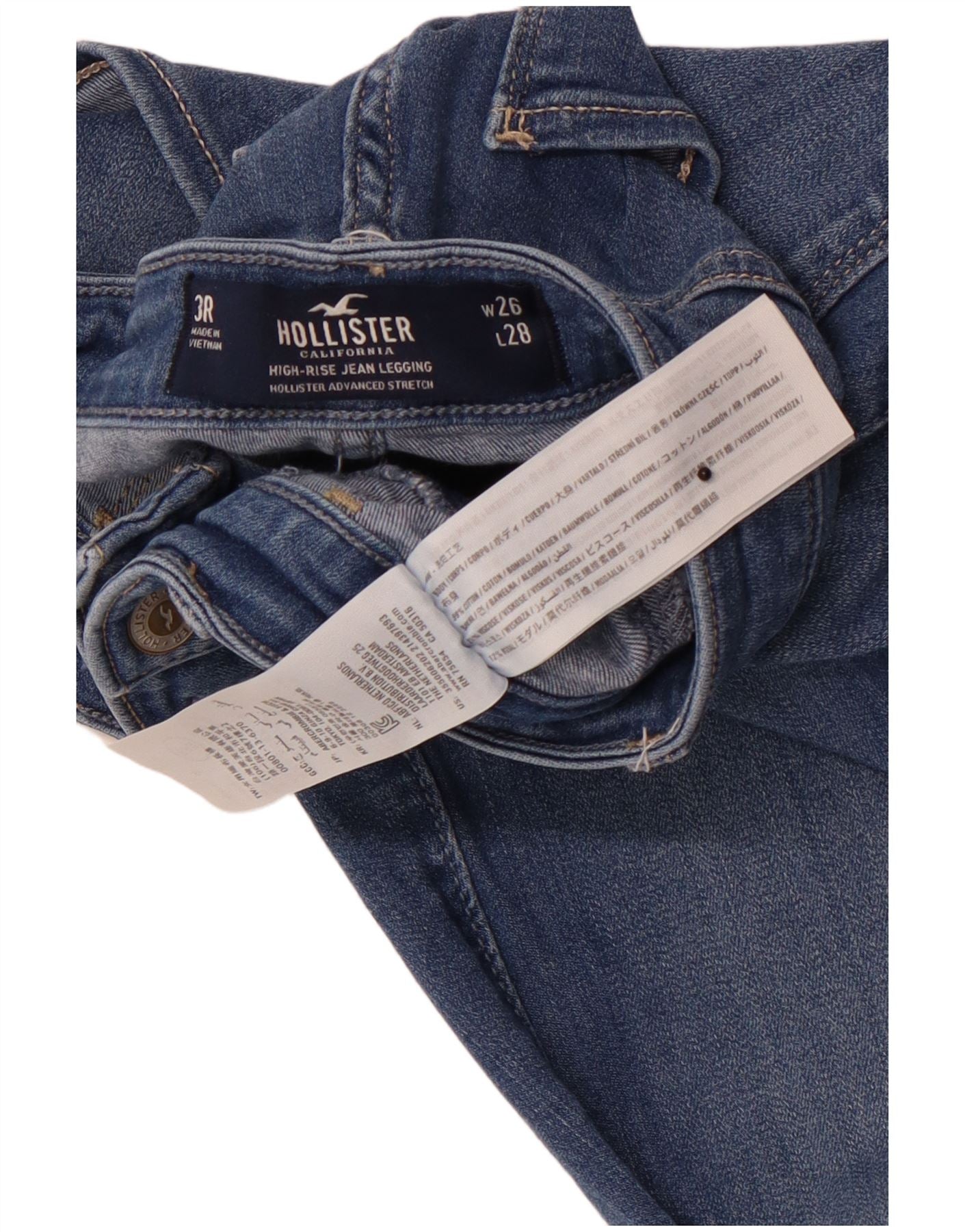 HOLLISTER Womens Distressed Legging High Waist Jeans W26 L28 Blue Cotton