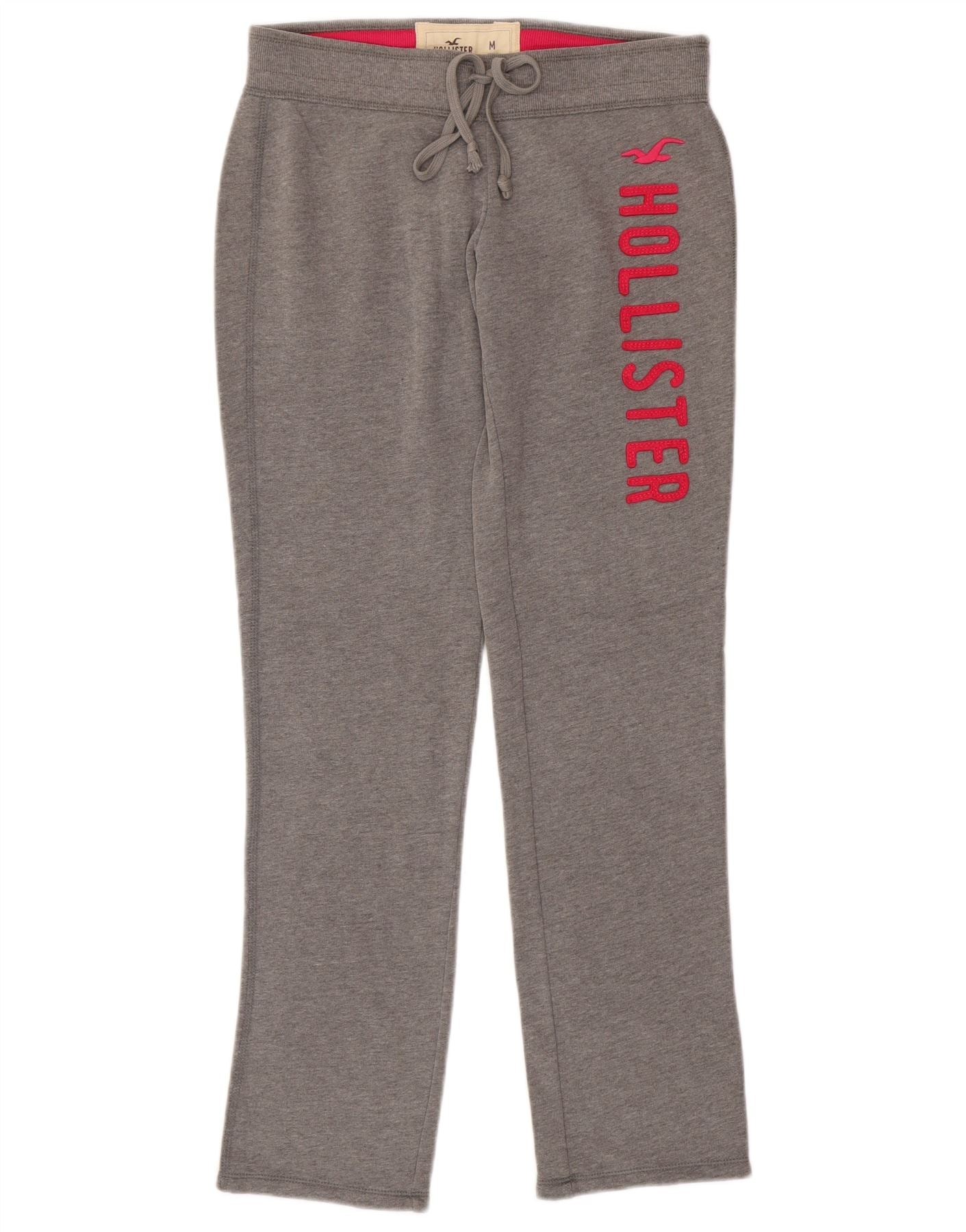 HOLLISTER Womens Graphic Tracksuit Trousers UK 14 Medium Grey Cotton