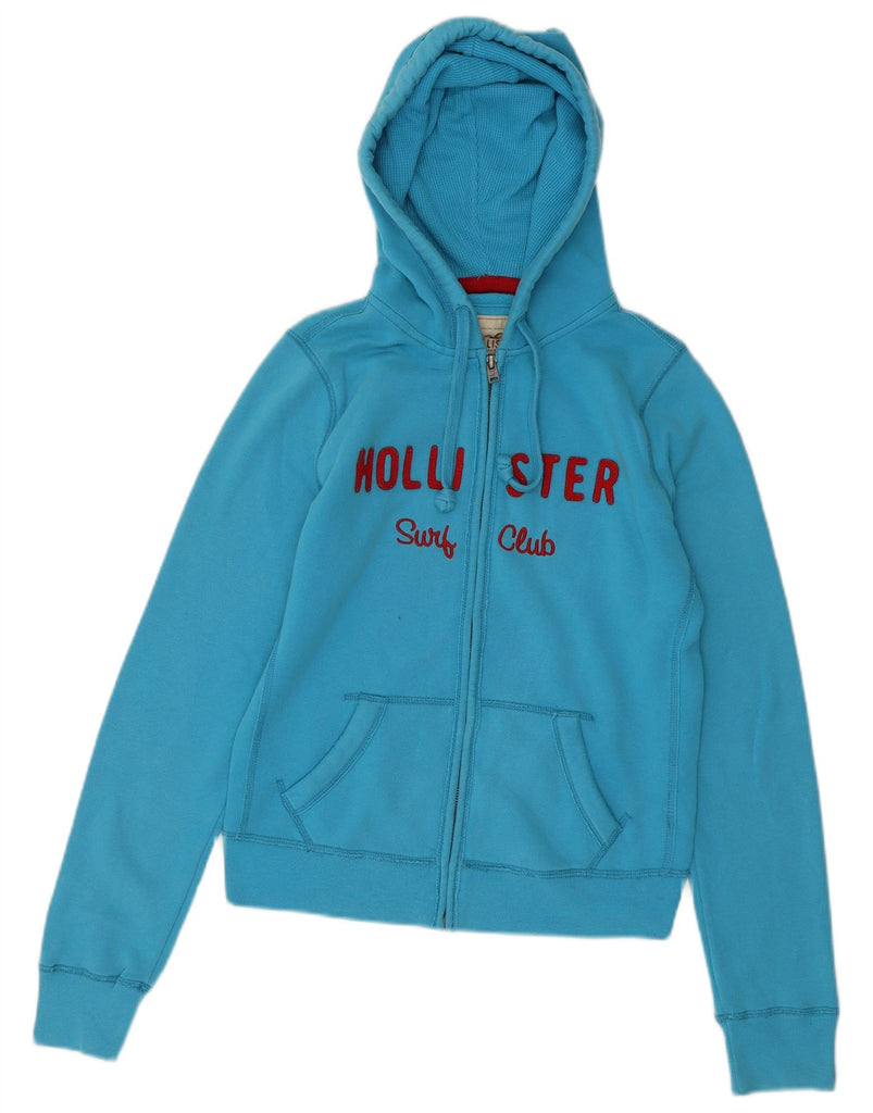 HOLLISTER Womens Graphic Zip Hoodie Sweater UK 14 Medium Blue Cotton
