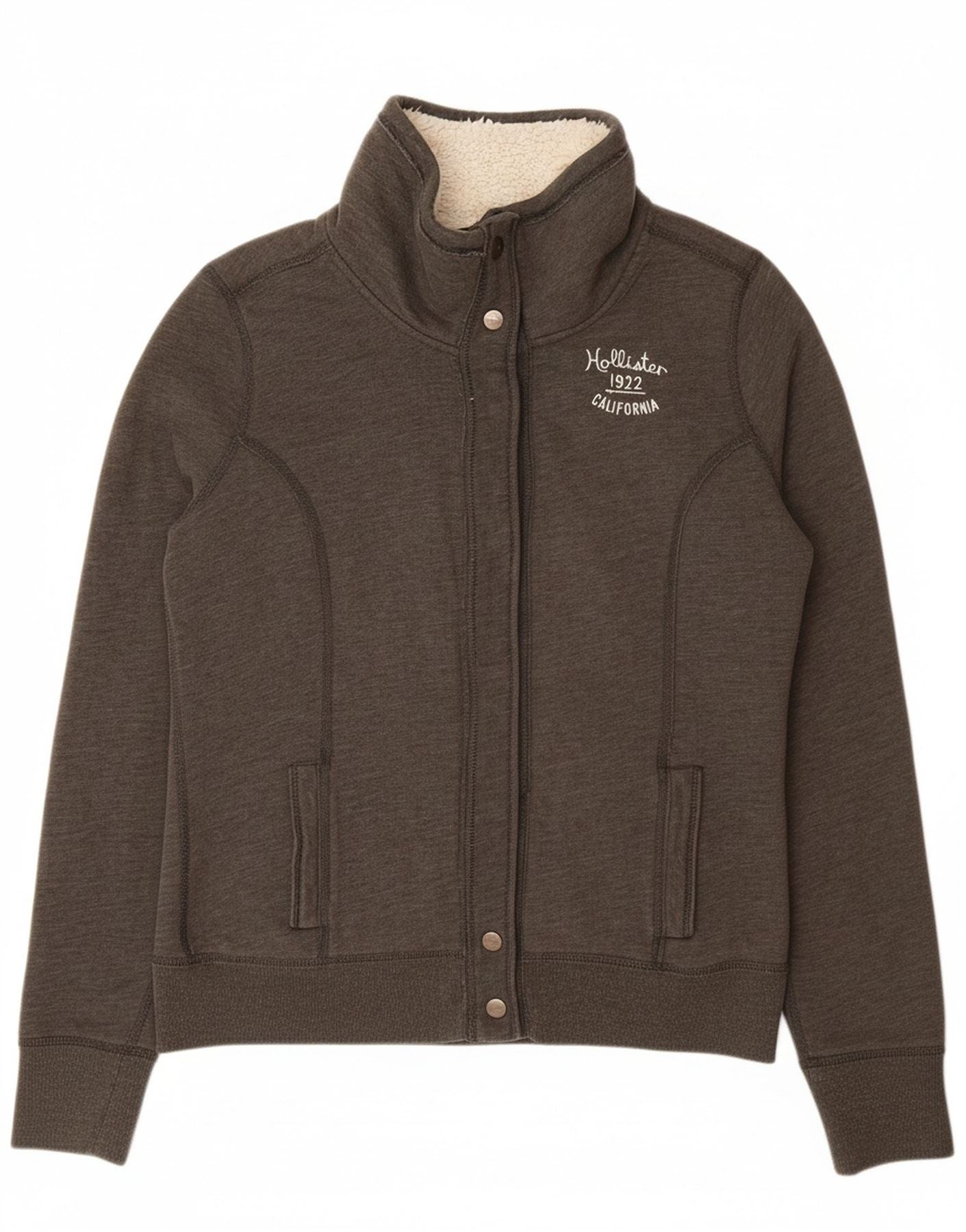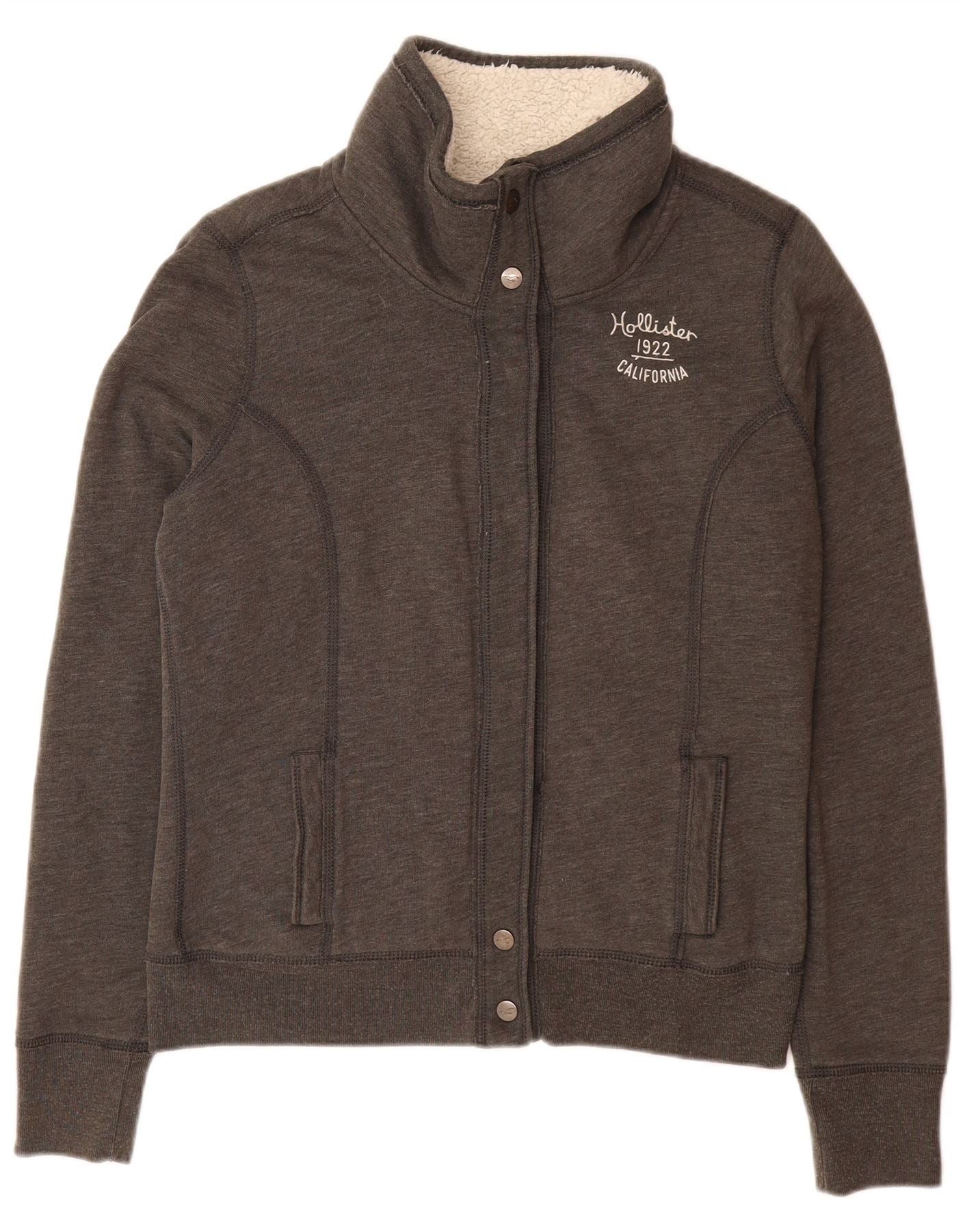 HOLLISTER Womens Sherpa Tracksuit Top Jacket UK 16 Large Grey Cotton