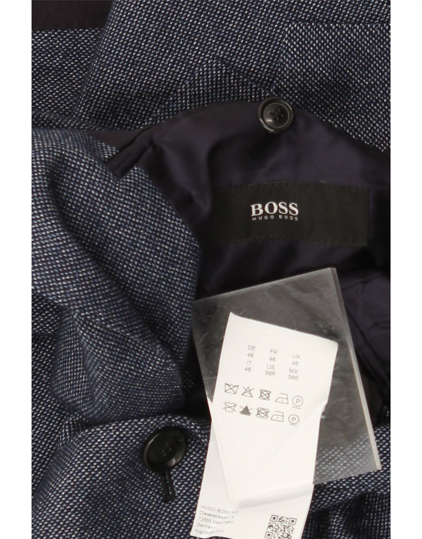 HUGO BOSS Mens 2 Button Blazer Jacket EU 46 Small Navy Blue Wool