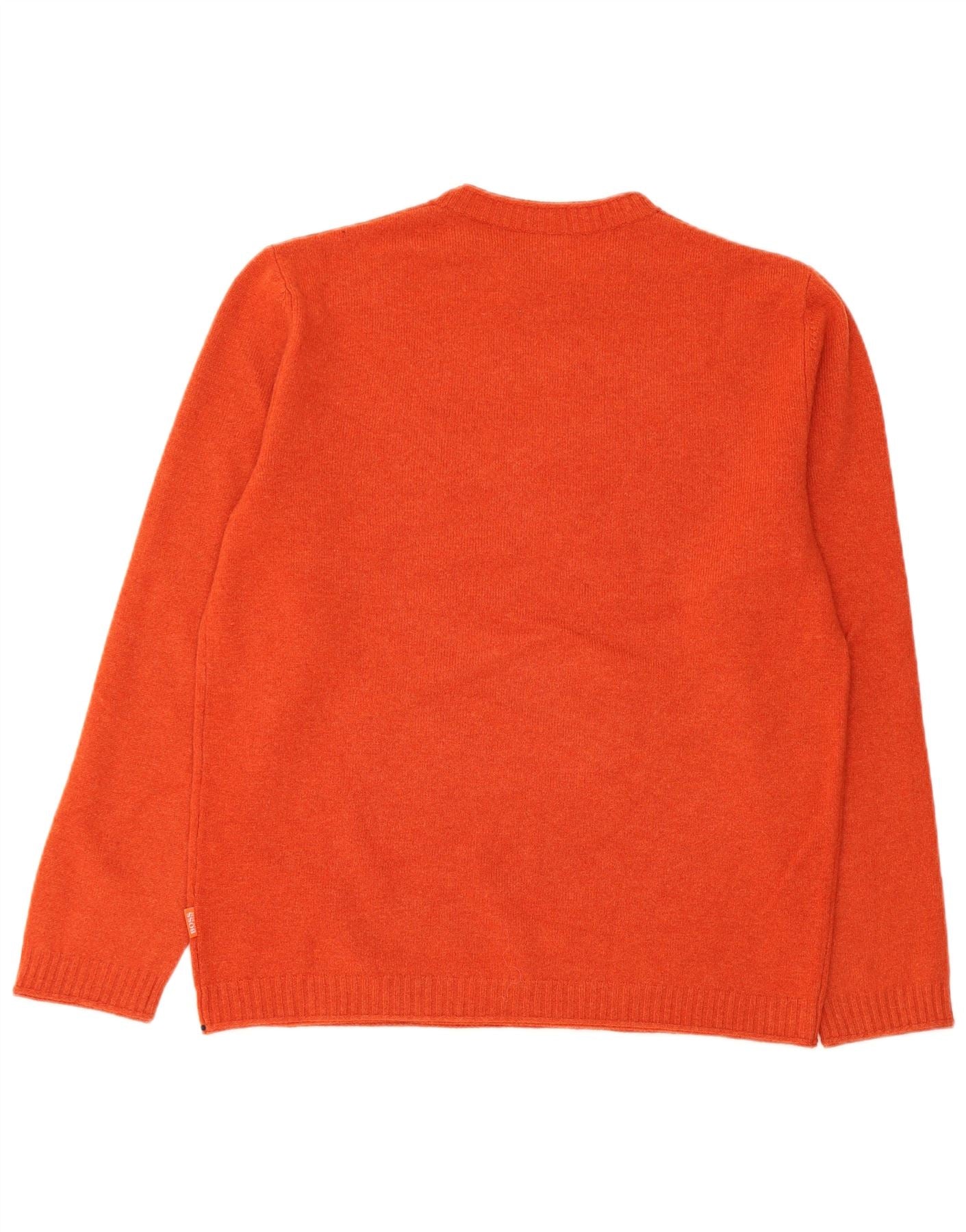 HUGO BOSS Mens Crew Neck Jumper Sweater Medium Orange Virgin Wool