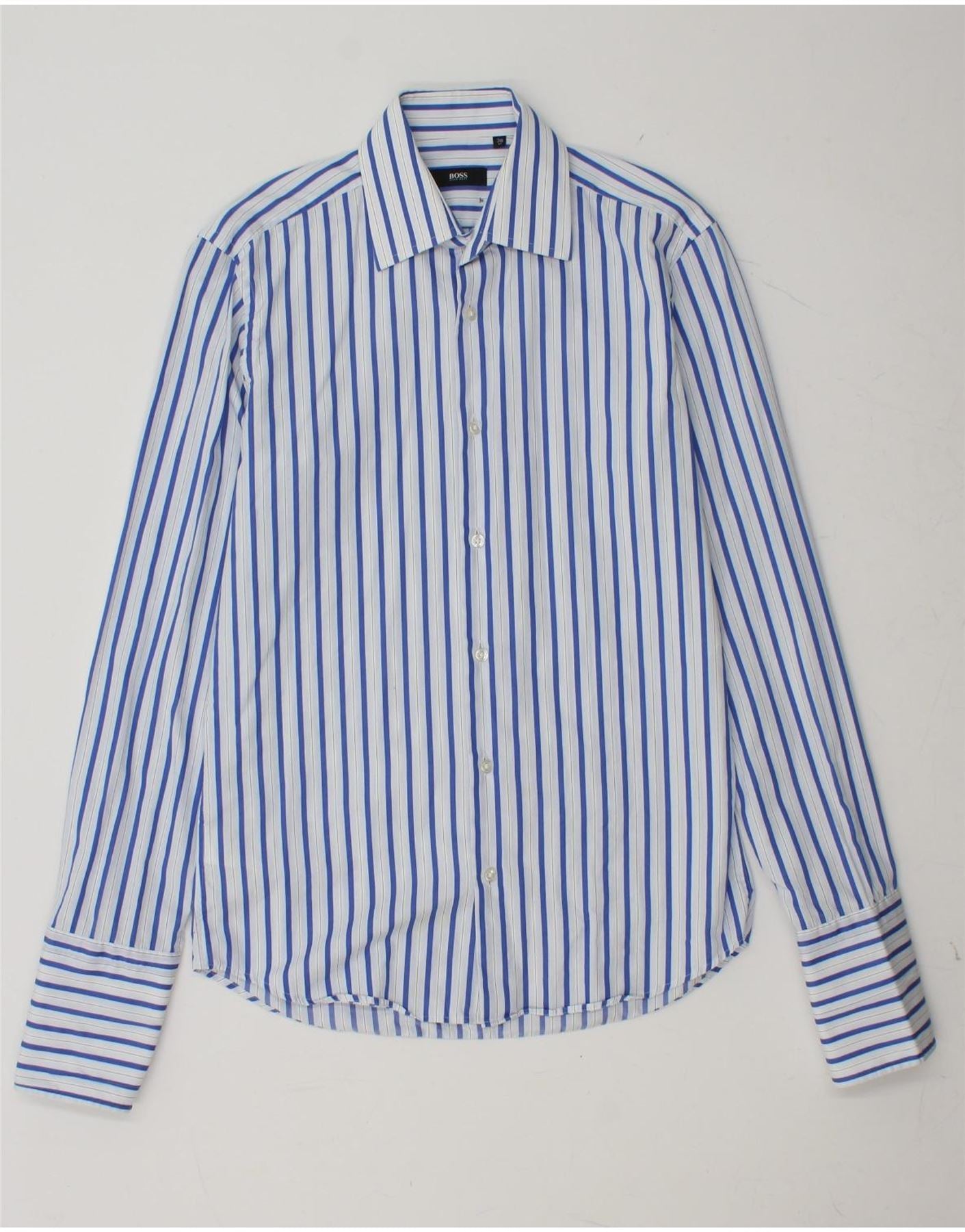 HUGO BOSS Mens Formal Shirt Size 38 15 Medium Blue Striped Cotton