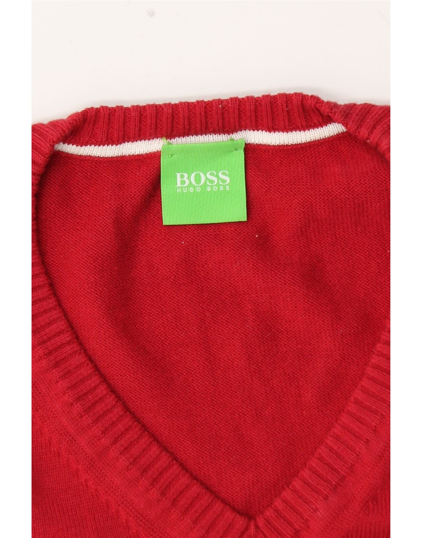 HUGO BOSS Mens Graphic V-Neck Jumper Sweater Large Red Colourblock