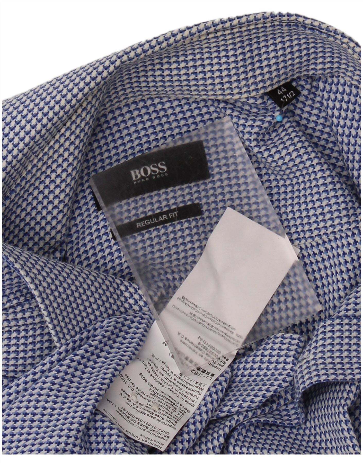 HUGO BOSS Mens Regular Fit Shirt Size 44 17 1/2 XL Blue Houndstooth Cotton