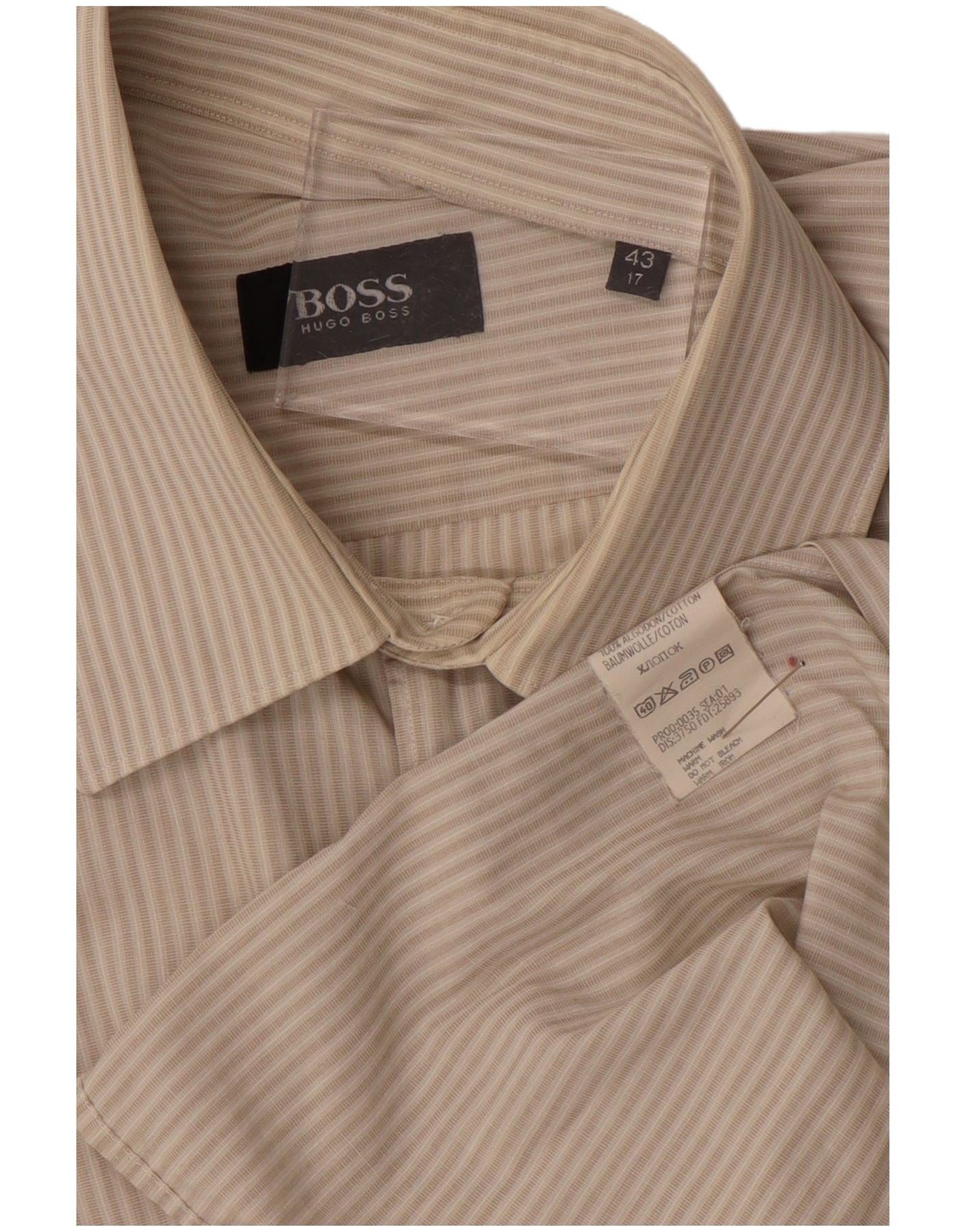 HUGO BOSS Mens Shirt Size 43 17 XL Beige Striped Cotton