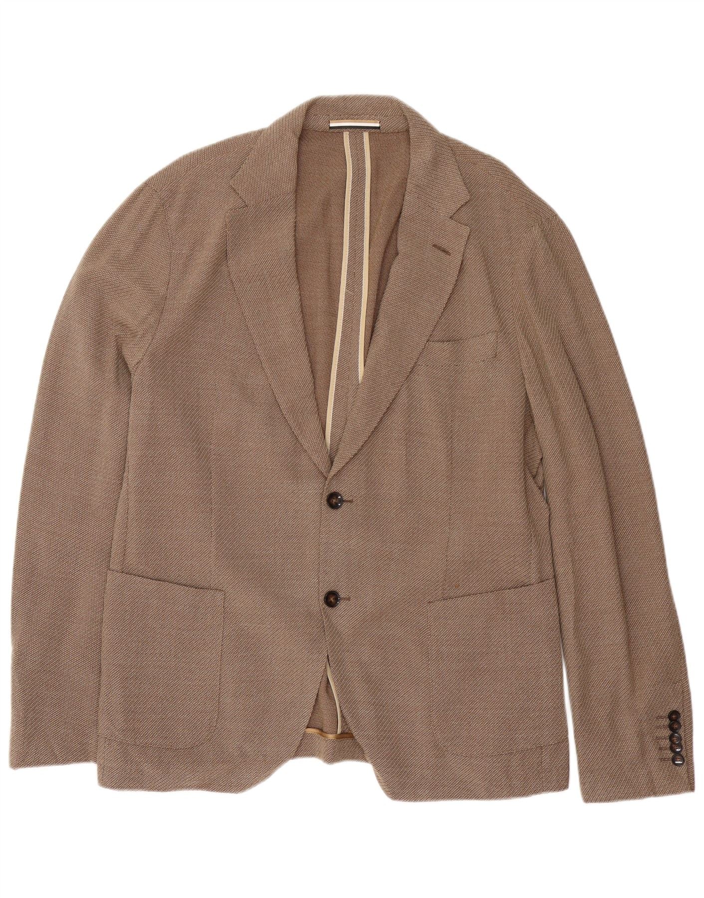 Hugo Boss Mens Slim Fit 2 Button Blazer Jacket EU 56 3XL Brown Virgin Wool